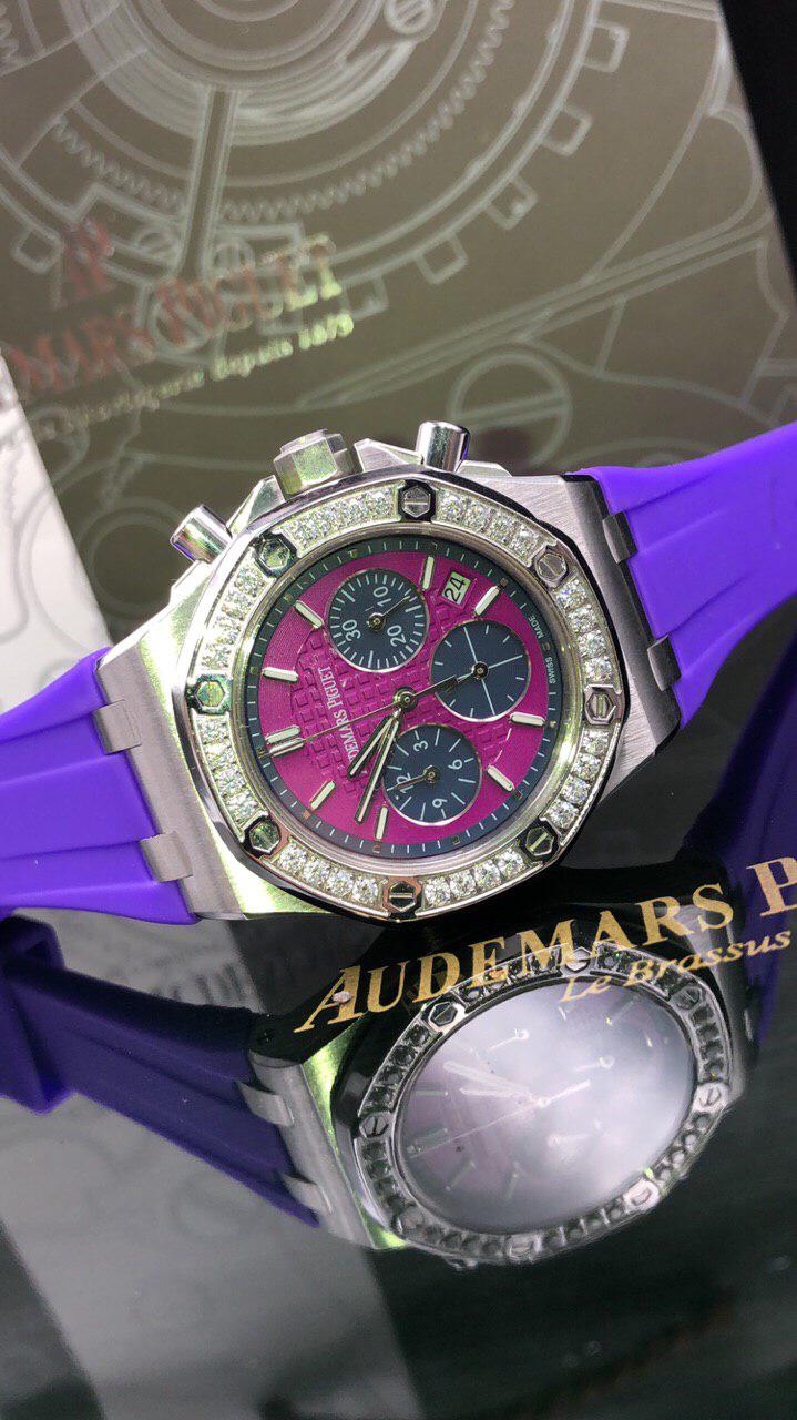 Часы женские Audemars Piguet LUX-16881 — это изысканный аксессуар, сочетающий в себе роскошь и спортивный стиль. Яркий фиолетовый ремешок в сочетании с серебристым корпусом и циферблатом цвета фуксии создает эффектный образ. Часы оснащены функцией хронографа и инкрустированы цирконами, что подчеркивает их элегантность. Этот аксессуар станет стильным дополнением к любому наряду, подчеркивая индивидуальность его обладательницы.