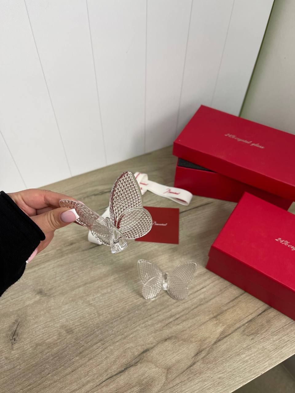 Статуэтки 2 шт Baccarat LUX-82555 — это изысканные декоративные предметы, выполненные в форме бабочек, которые символизируют утонченность и изящество. Прозрачный материал, из которого изготовлены статуэтки, добавляет им легкость и воздушность, а игра света на гранях создает неповторимую игру бликов. Эти статуэтки могут служить элегантным украшением интерьера или стать прекрасным подарком.