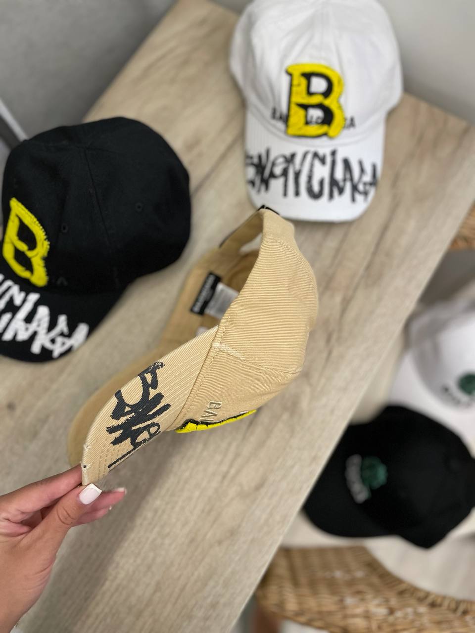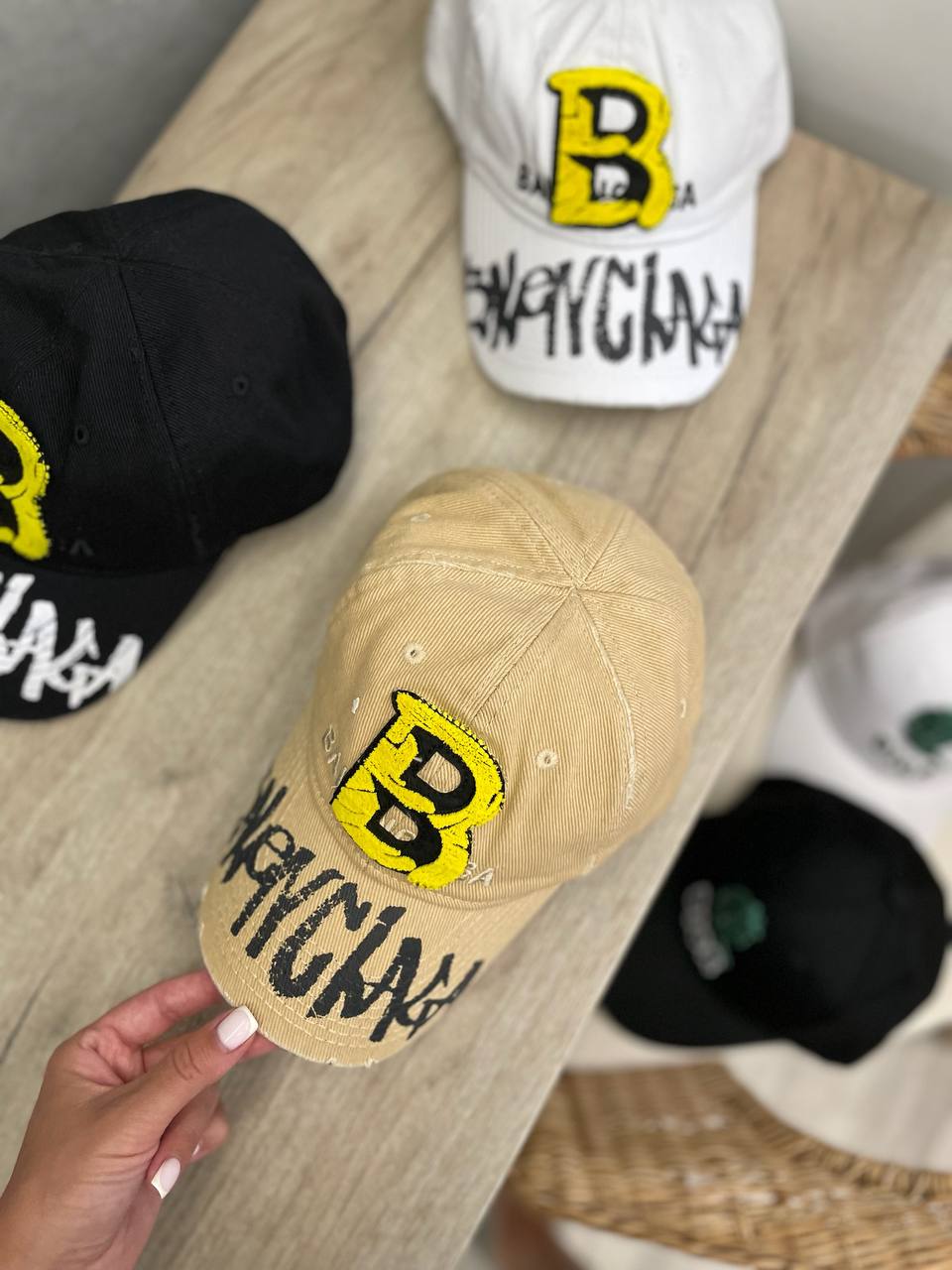 Бейсболка Balenciaga LUX-108190 - это стильный аксессуар, который подчеркнет вашу индивидуальность. Она выполнена в песочном цвете, с желтой вышивкой логотипа "B" и надписью "BALENCIAGA" на козырьке. Бейсболка представляет собой современный и практичный аксессуар для повседневного использования.