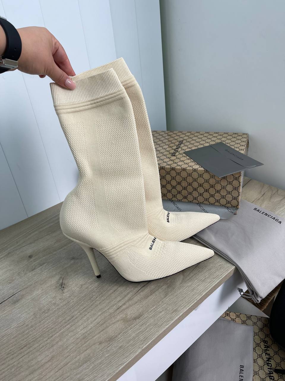 Ботильоны Balenciaga LUX-81295 — это стильная обувь, сочетающая в себе современный дизайн и элегантность. Ботильоны выполнены в кремовом цвете, с выразительной текстурой. Подходят для создания эффектных образов.