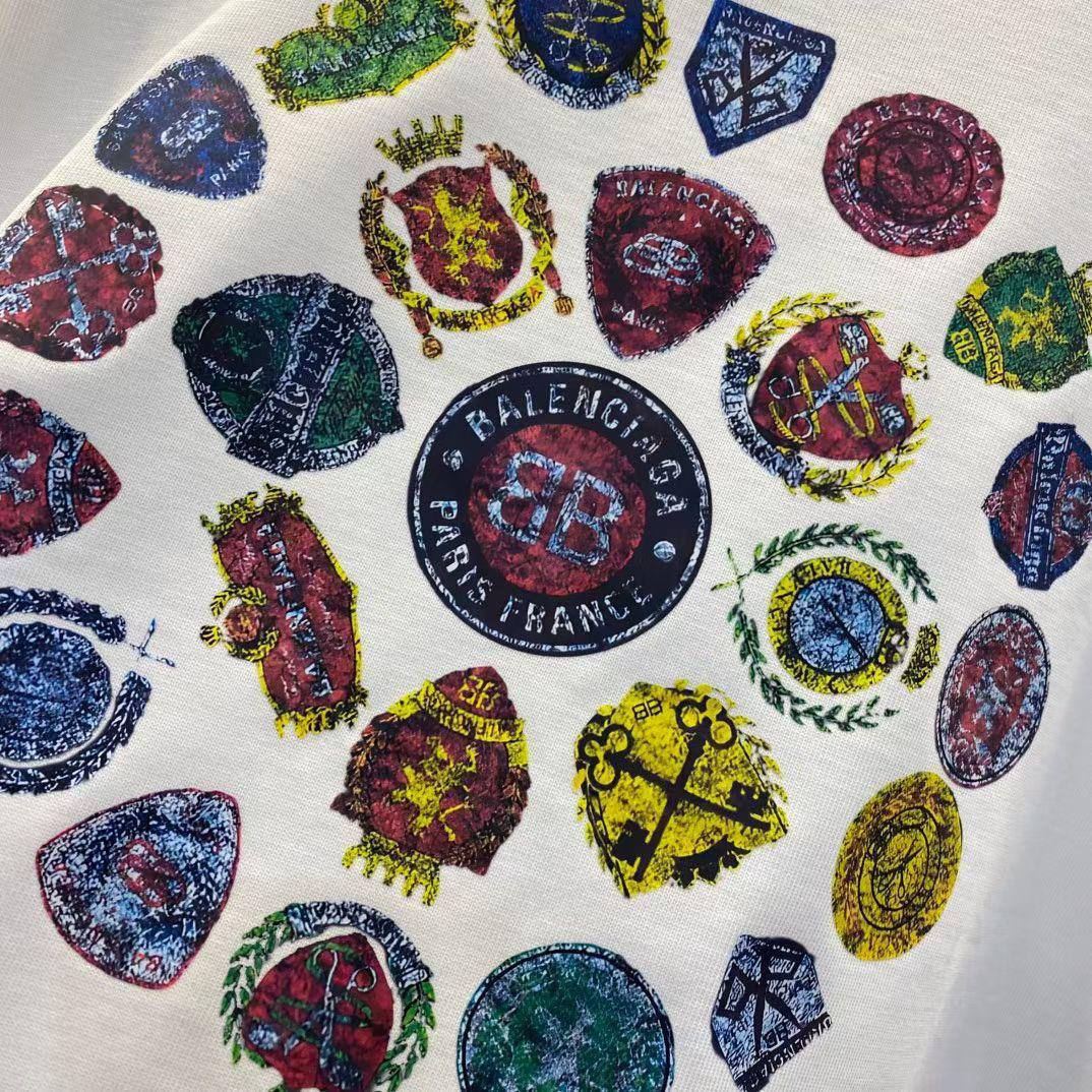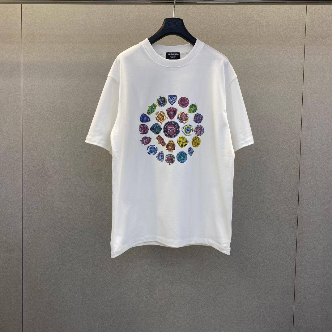 Футболка Balenciaga с круглым принтом – стильная и комфортная модель для повседневной носки. Она легко сочетается с различными элементами гардероба, создавая яркий и запоминающийся образ.