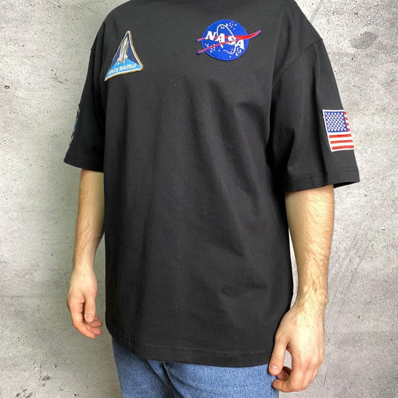 Balenciaga футболка LUX-47231 — это стильная черная футболка с уникальным дизайном, вдохновленным космической тематикой. Принт в виде логотипа NASA, нашивки со Space Shuttle и американского флага на рукаве делают эту футболку ярким акцентом в любом образе, придавая ему современный и дерзкий вид.
