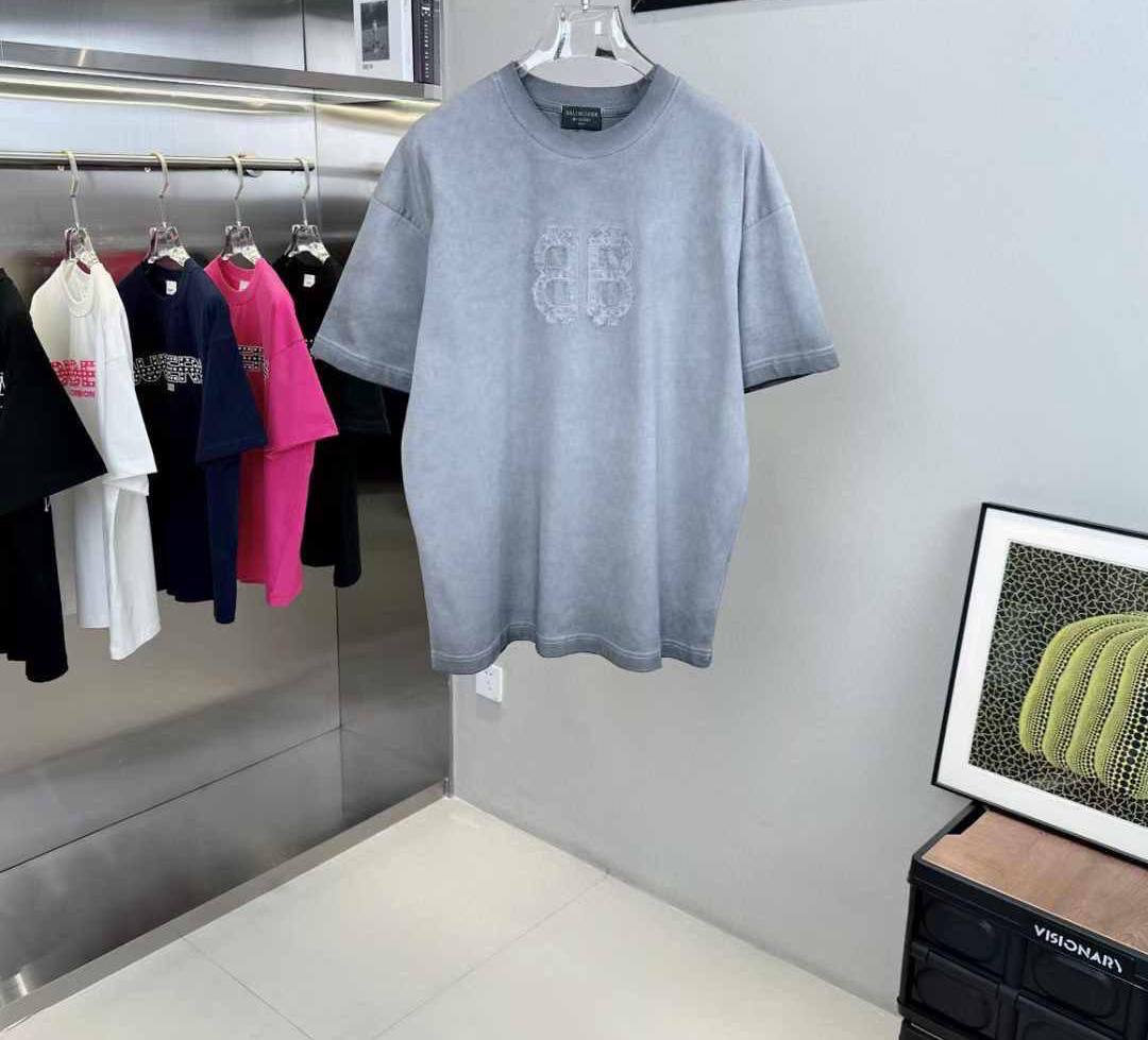Мужская футболка Balenciaga LUX-113107 представляет собой стильную модель в стиле casual. Футболка выполнена в сером цвете с текстурированным эффектом, имеет прямой крой и короткие рукава, что делает ее универсальным элементом гардероба. На груди расположен объемный логотип бренда.