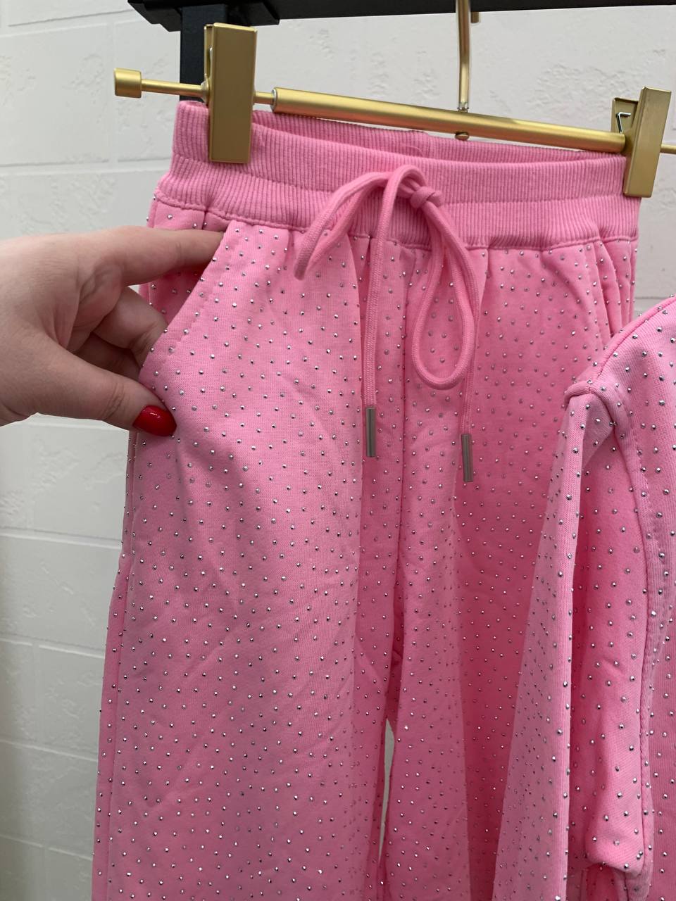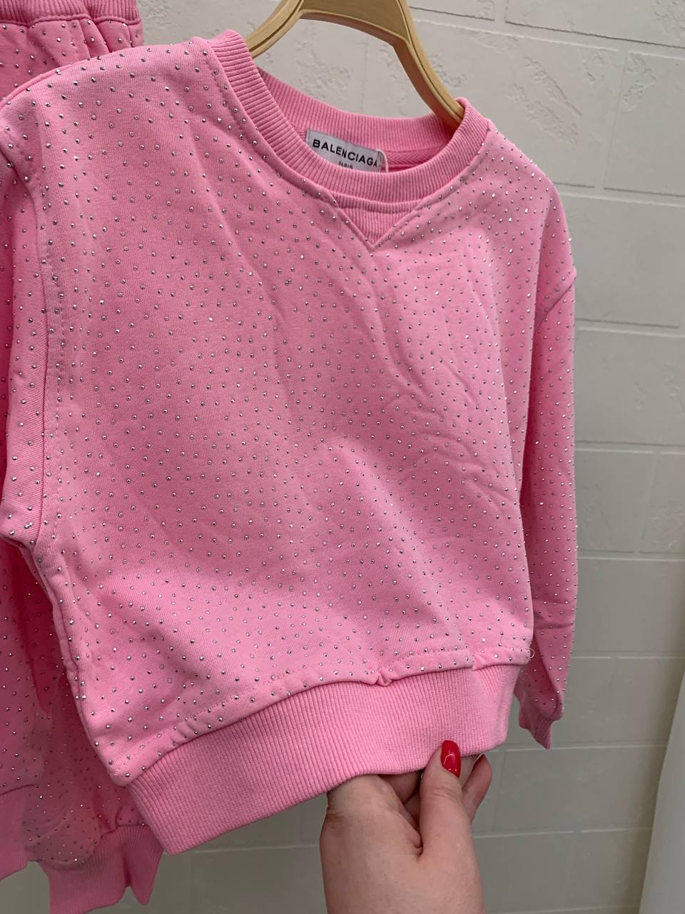 Костюм Balenciaga LUX-108936 — это стильный и комфортный комплект одежды, состоящий из толстовки и брюк. Комплект выполнен в ярком розовом цвете и украшен сверкающими элементами. Он идеально подойдет для создания яркого и запоминающегося образа в стиле casual.
