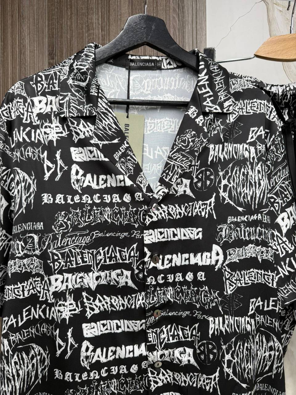 Мужской костюм Balenciaga с принтом логотипа бренда – это стильный выбор для тех, кто ценит комфорт и оригинальный дизайн. Костюм состоит из рубашки с короткими рукавами и шорт, выполненных в едином стиле.