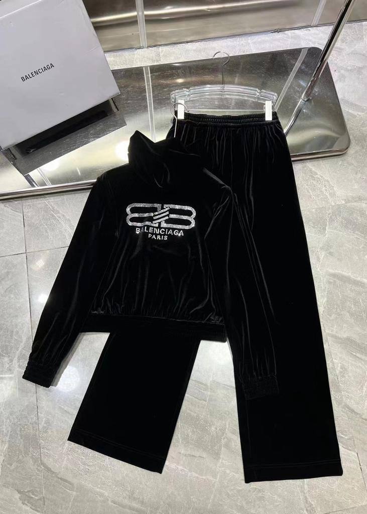Костюм спортивный Balenciaga LUX-94908 – это воплощение стиля и комфорта. Этот черный велюровый костюм от Balenciaga, состоящий из худи на молнии и брюк, идеально подходит для создания модных повседневных образов. Текстура велюра придает ему изысканный вид, делая его подходящим как для спортивных занятий, так и для прогулок.