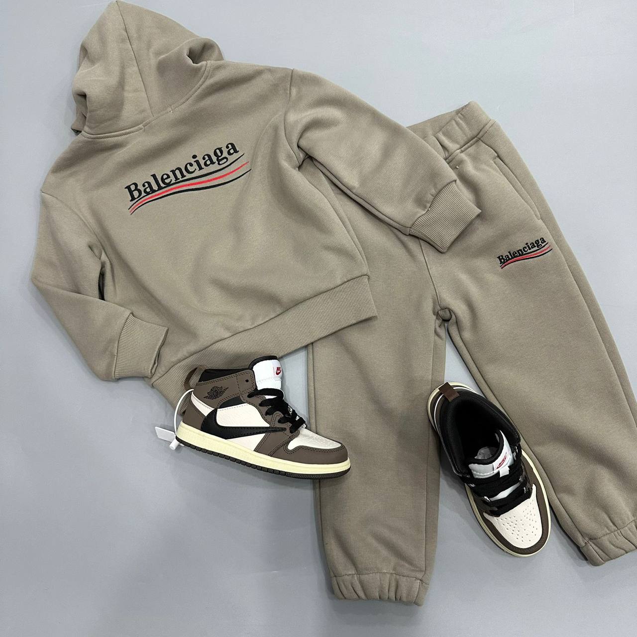 Костюм утеплённый Balenciaga LUX-98954 - это стильный и комфортный комплект для повседневной носки. Костюм выполнен в нейтральном цвете, который легко сочетается с другой одеждой. Этот комплект подойдет для прогулок, активного отдыха и создания модных образов.