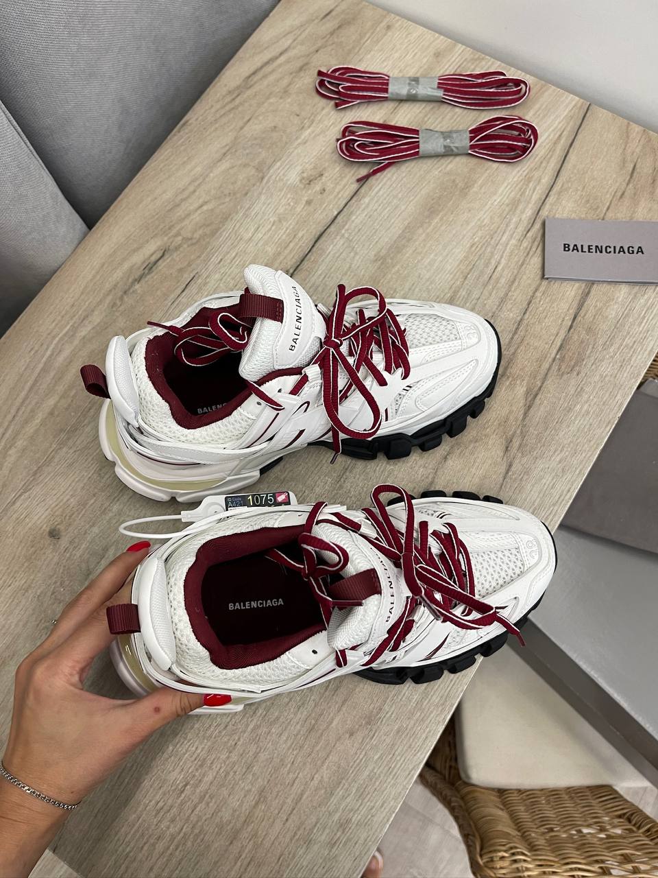 Кроссовки Balenciaga LUX-108675 представляют собой стильную модель, сочетающую в себе современный дизайн и функциональность. Основной цвет кроссовок - белый, с бордовыми и черными акцентами, что придает им выразительность и привлекательность. Идеально подойдут для создания ярких образов в повседневной жизни.