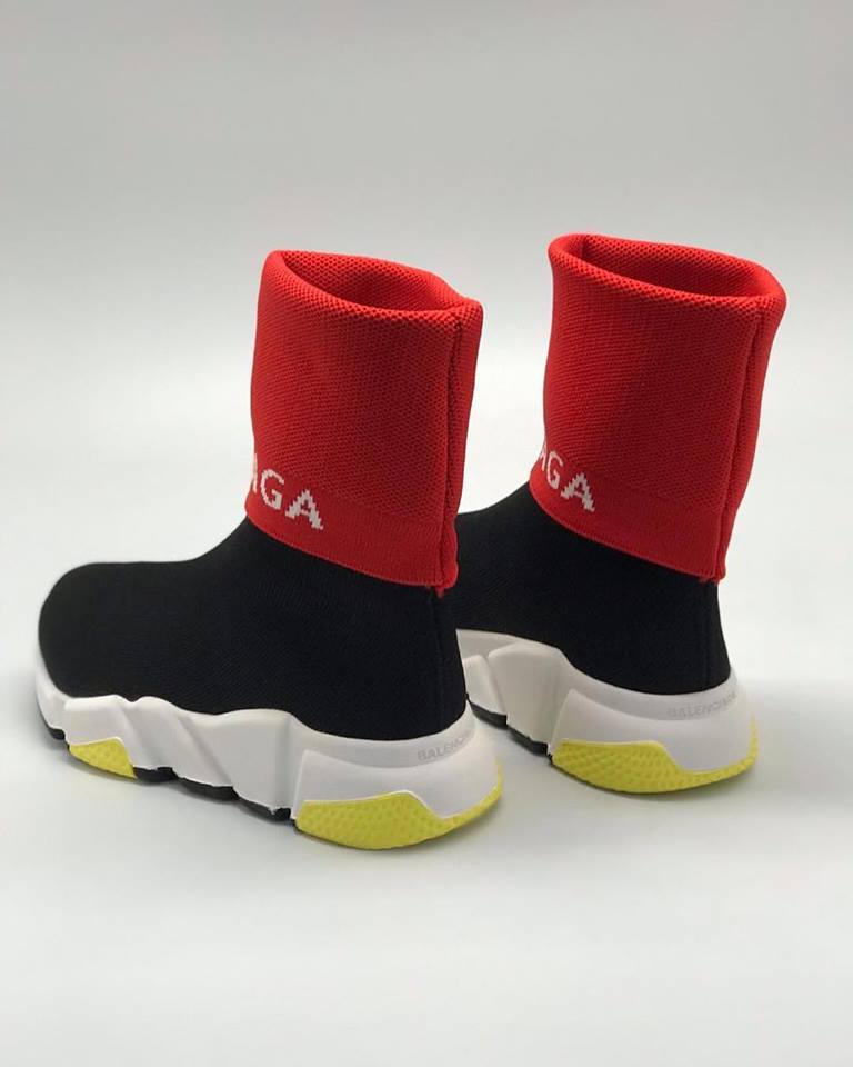 Эти женские кроссовки Balenciaga LUX-11578 сочетают в себе современный дизайн и спортивный стиль. Модель выполнена в черном цвете с яркими красными манжетами и акцентной желтой деталью на подошве. Стильный силуэт делает их идеальным выбором для создания модных повседневных образов.
