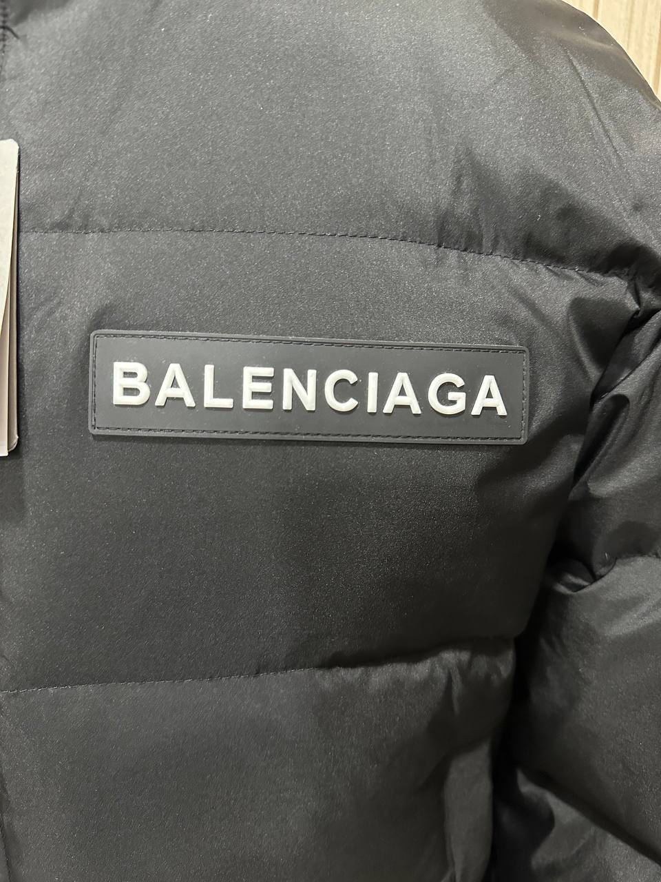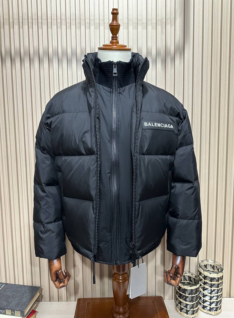 Мужская куртка Balenciaga LUX-113487 — это стильная и практичная верхняя одежда. Модель выполнена в классическом черном цвете, что делает ее универсальной для любого гардероба. Куртка имеет объемный силуэт и высокий воротник, обеспечивая защиту от холода и ветра.