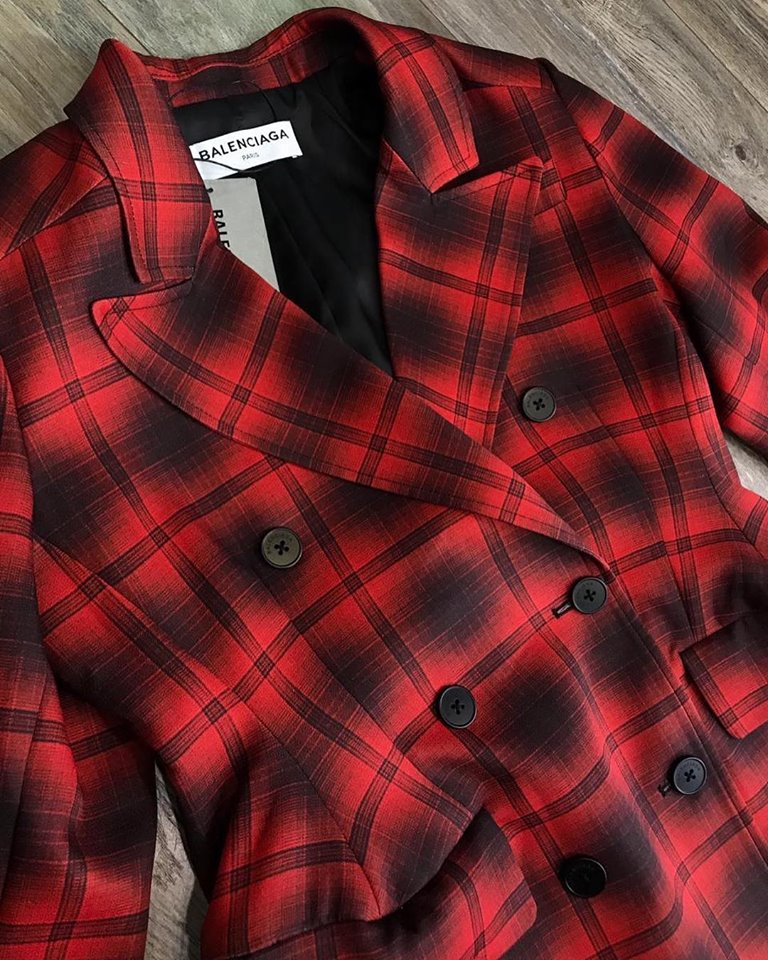 Пиджак женский Balenciaga LUX-11815 – это стильная модель с узнаваемым клетчатым принтом в красно-черных тонах. Двубортный крой и классический воротник придают ему элегантность, а современные детали делают образ актуальным. Этот пиджак станет ярким акцентом в вашем гардеробе, подчеркивая индивидуальность.