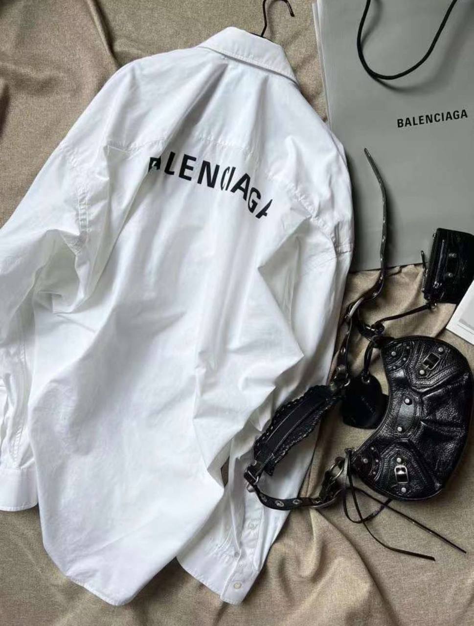 Рубашка Balenciaga (артикул LUX-87797) представляет собой стильную и современную модель. Рубашка выполнена в белом цвете с логотипом бренда на спине, что придает ей узнаваемый и модный вид. Эта рубашка идеально подходит для создания модных повседневных образов.