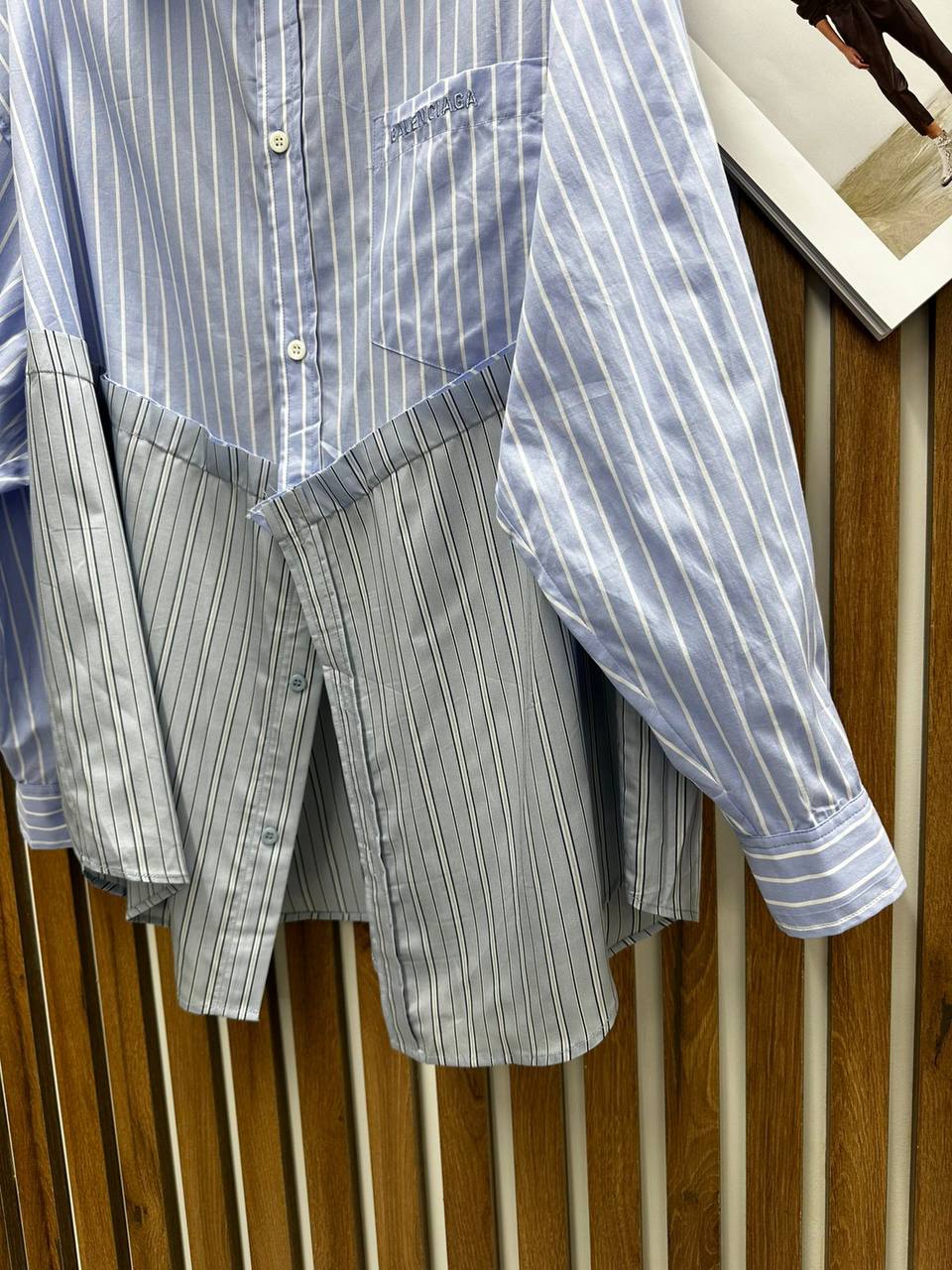 Рубашка Balenciaga LUX-106983 – это стильное сочетание элегантности и современного дизайна. Эта рубашка выполнена в классическом полосатом стиле с акцентом на асимметрию кроя. Небесно-голубой цвет с белыми полосами придает ей свежий и современный вид, идеально подходящий для создания различных образов.