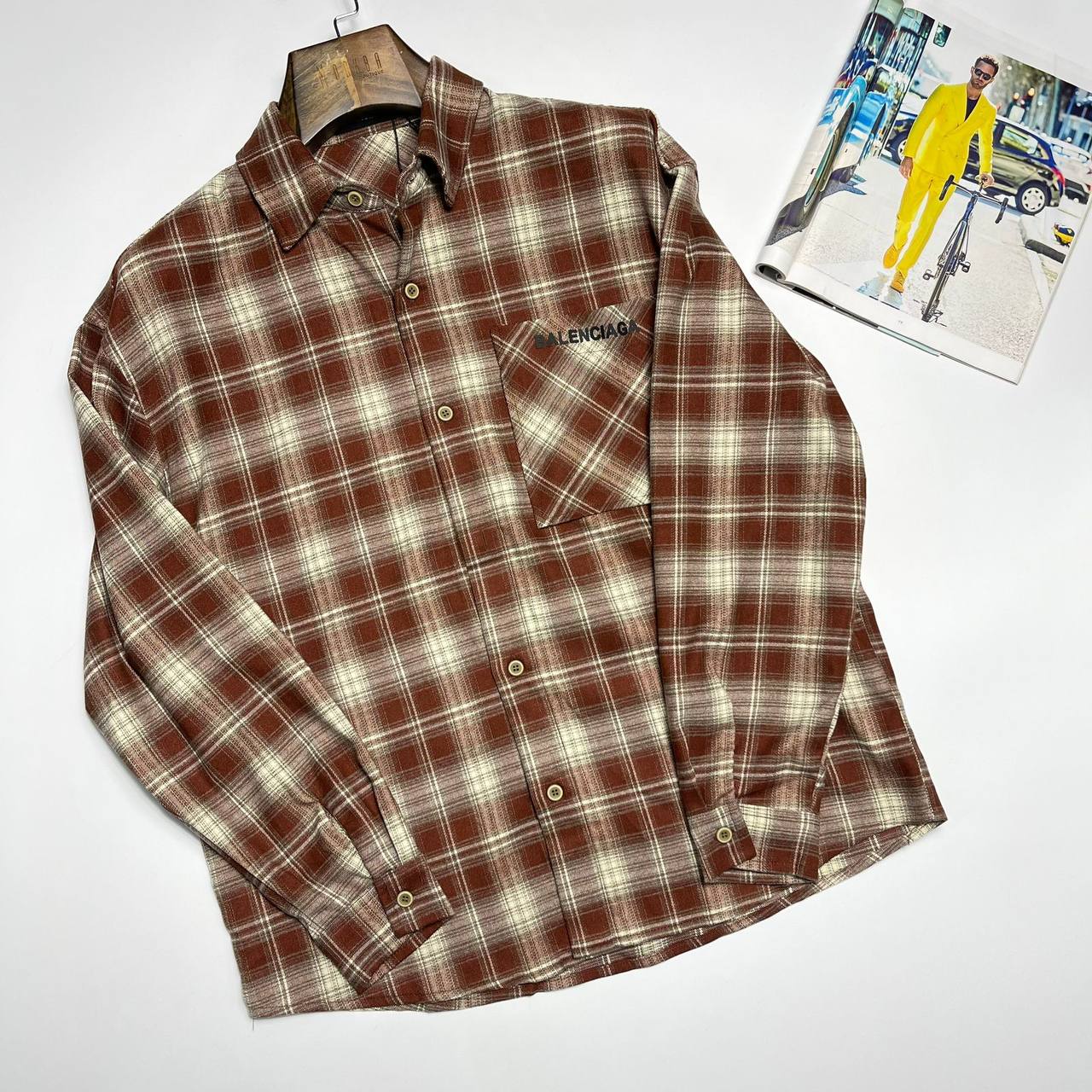 Рубашка Balenciaga LUX-110852 — это стильная рубашка в клетку, выполненная в классическом стиле. Модель имеет преобладающий коричневый цвет с кремовыми клетчатыми узорами, что придает изделию современный и модный вид. Эта рубашка идеально подходит для создания повседневных образов.