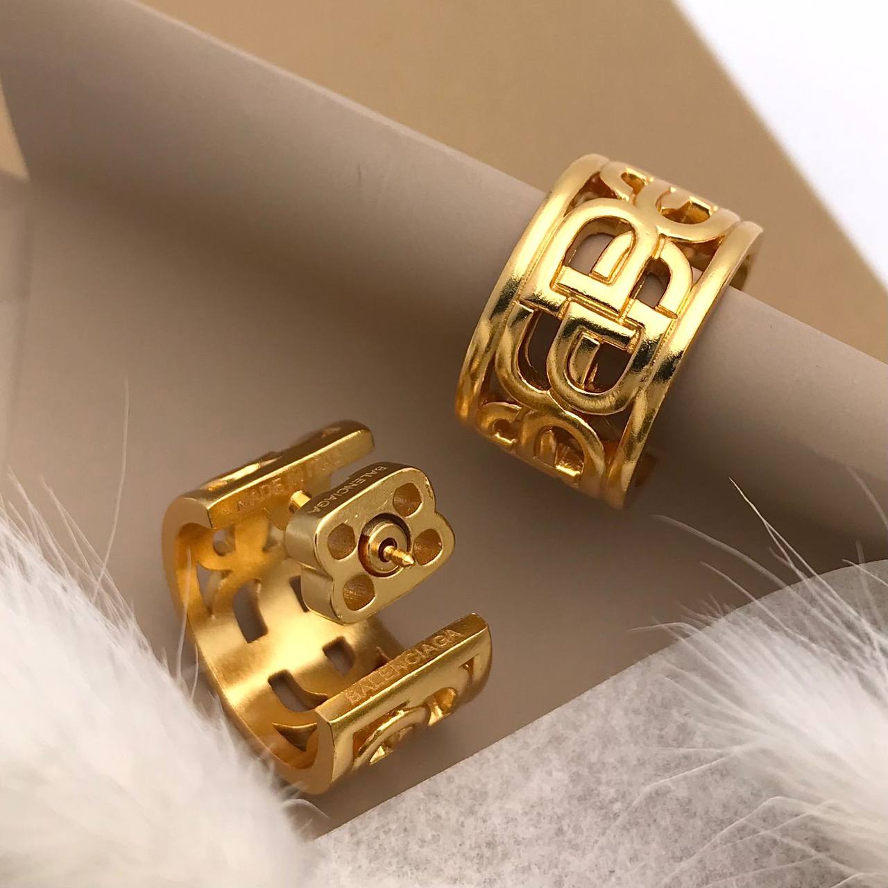 Серьги Balenciaga Sergi 19 LUX-89017 представляют собой стильный аксессуар, выполненный в золотистом цвете. Серьги выполнены в форме колец с вырезанным логотипом бренда. Они идеально подойдут для создания ярких и запоминающихся образов, подчеркивая индивидуальность и вкус своей обладательницы.