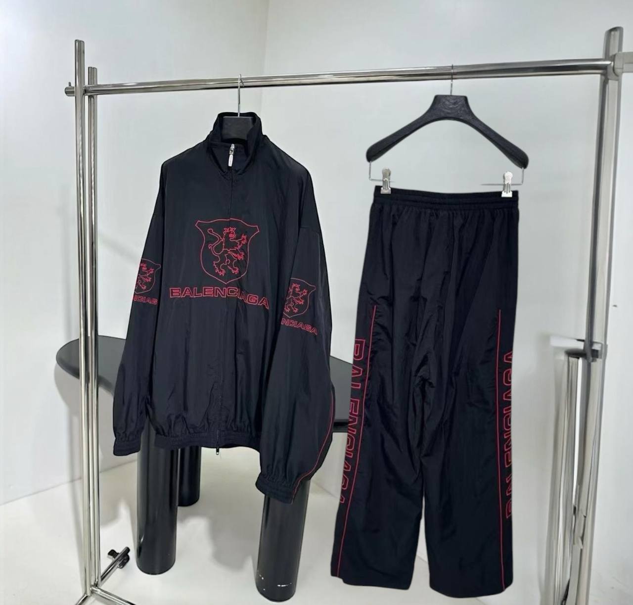 Костюм спортивный Balenciaga LUX-116291 – это стильный спортивный костюм от известного бренда. Костюм выполнен в черном цвете с контрастными красными элементами. Дизайн костюма сочетает в себе спортивный стиль и узнаваемые детали бренда.