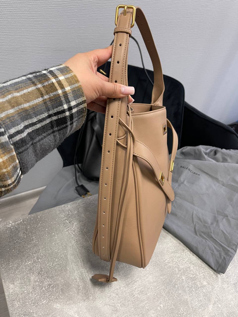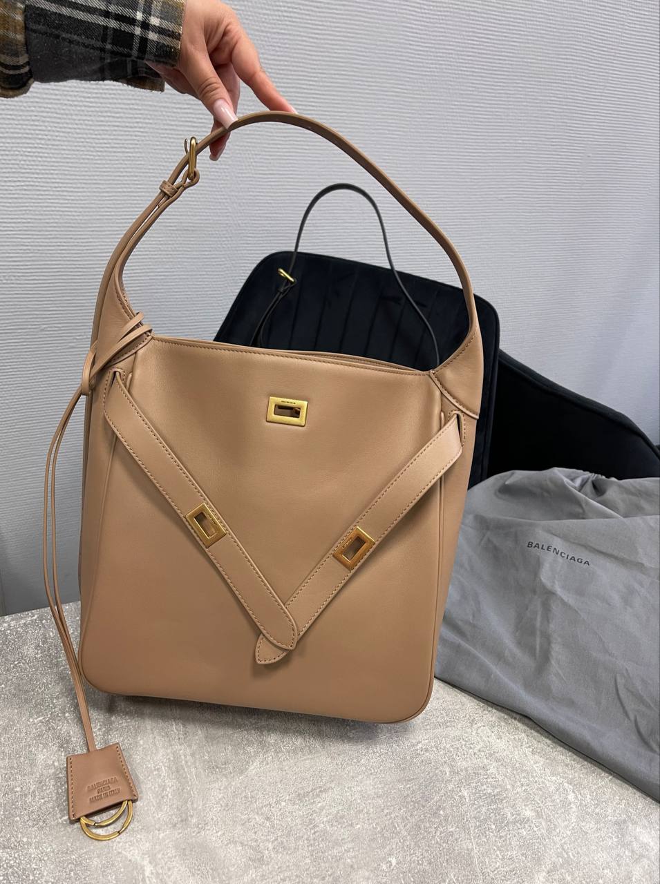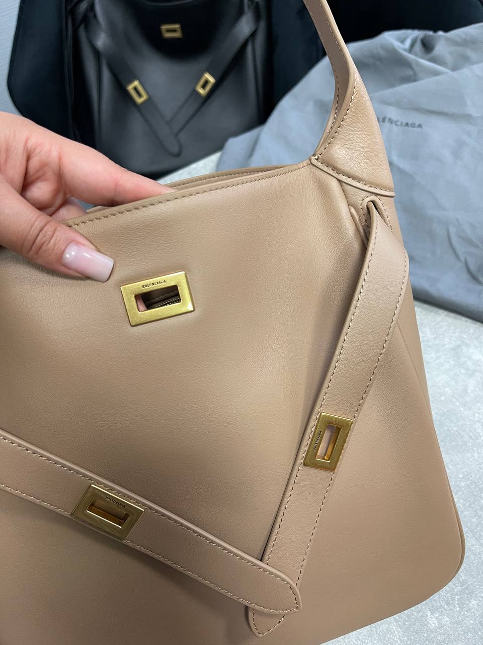 Сумка BEL AIR HOBO Balenciaga LUX-117128 - это элегантная сумка-хобо от Balenciaga, выполненная в нейтральном бежевом цвете. Она отличается лаконичным дизайном и строгими геометрическими формами. Сумка прекрасно подойдёт для повседневного использования, дополняя любой образ.