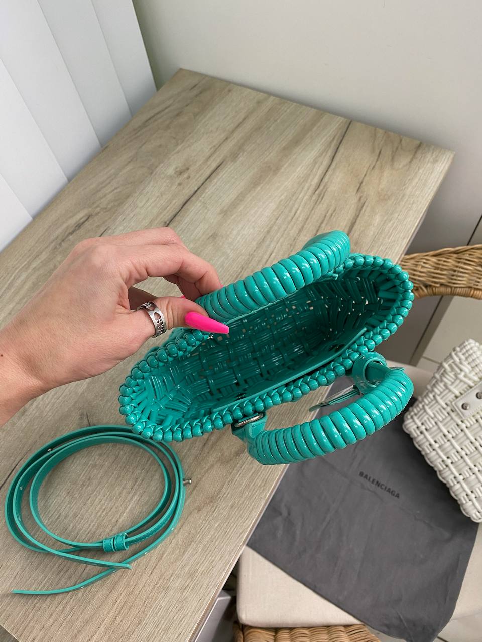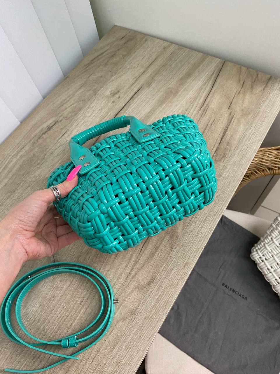 Сумка женская Balenciaga LUX-84111 представляет собой элегантный аксессуар в стиле casual. Сумка выполнена в насыщенном бирюзовом цвете с текстурой плетения, что придает ей уникальный и узнаваемый вид. Идеально подойдет для повседневного использования, дополняя любой образ.