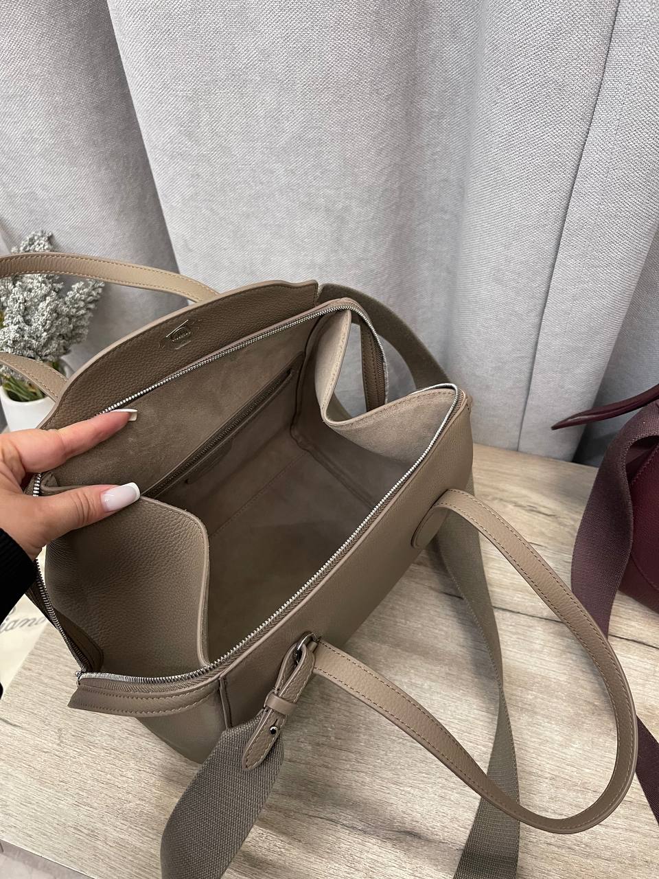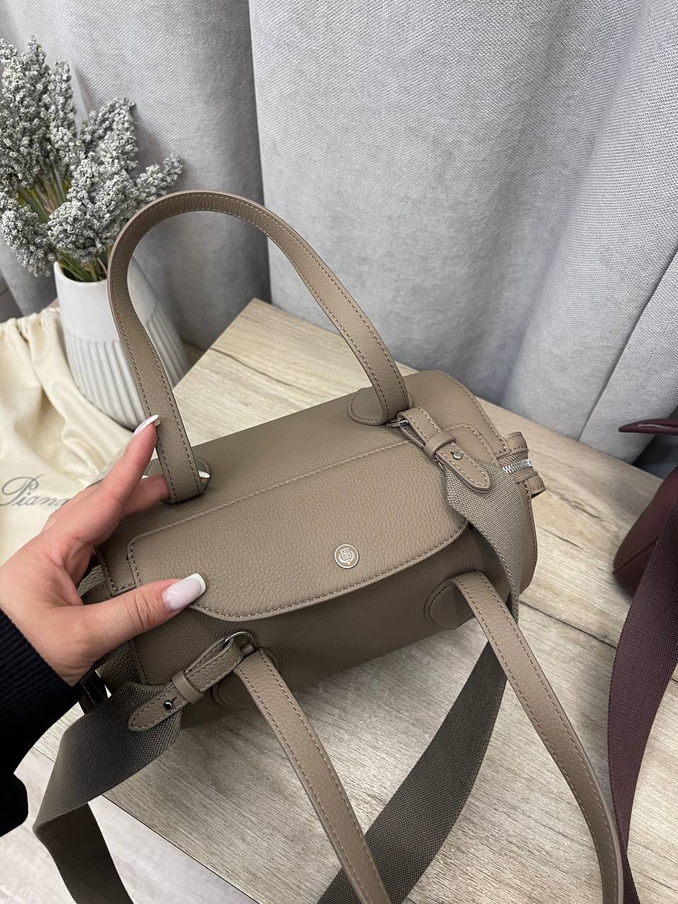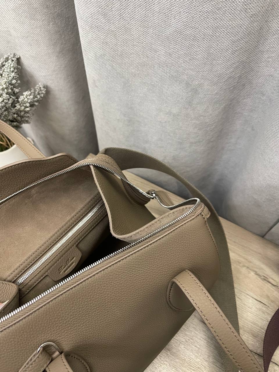 Сумка женская Loro Piana LUX-114152 — элегантный аксессуар, выполненный в современном стиле. Сумка среднего размера, выполнена в нейтральном цвете, что делает ее универсальным вариантом для любого гардероба. Её минималистичный дизайн и мягкие формы делают ее привлекательной для повседневного использования.