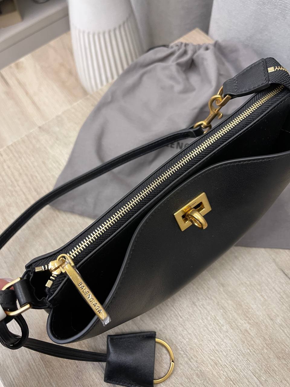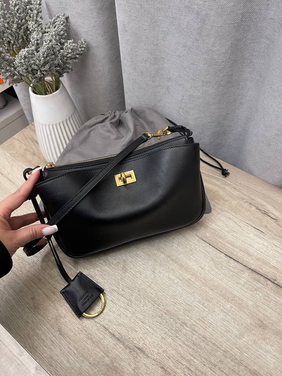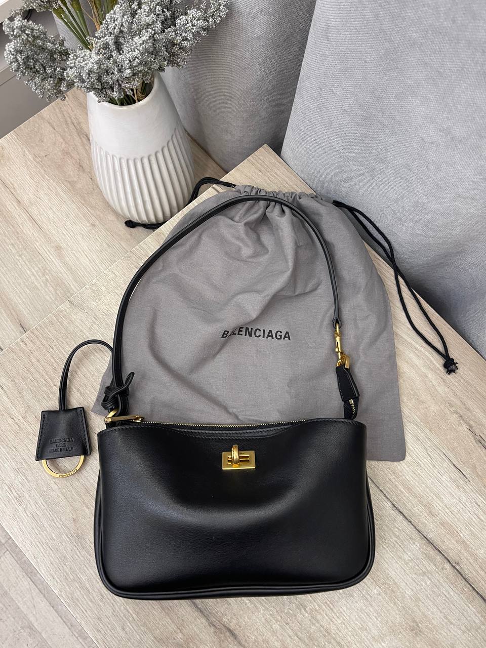 Сумка женская Balenciaga LUX-114154 — это стильный аксессуар, представляющий собой воплощение элегантности и функциональности. Чёрный цвет сумки делает ее универсальной и подходящей для различных образов. Небольшой размер сумки позволяет использовать её для повседневных задач.