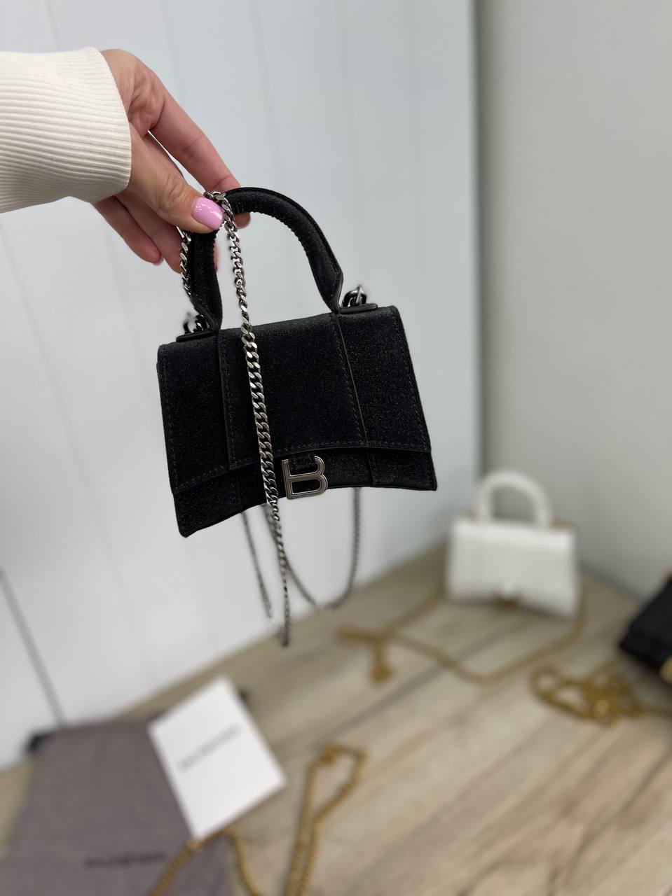Balenciaga Сумка женская LUX-68958 представляет собой стильный аксессуар в лаконичном черном цвете. Эта миниатюрная сумка эффектно дополнит как вечерний, так и повседневный образ, подчеркивая ваш утонченный вкус.