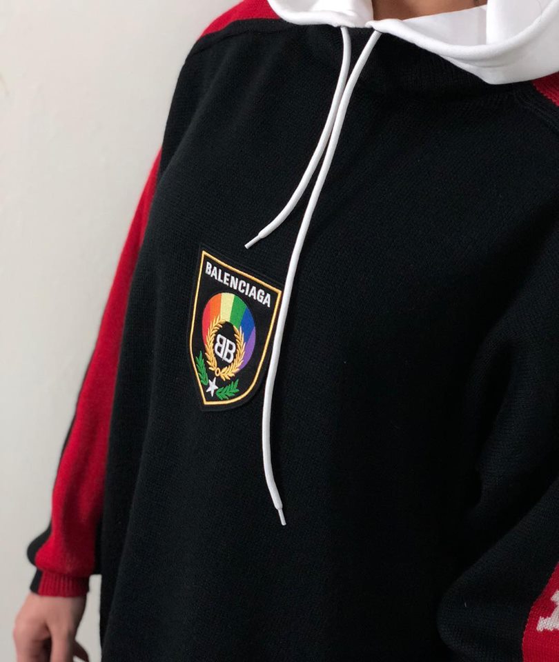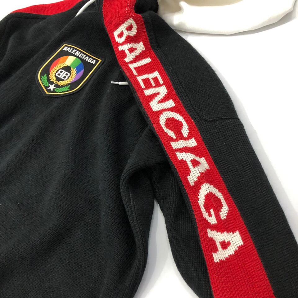 Этот женский свитер Balenciaga ОДЖ-1040 сочетает в себе спортивный стиль и элегантность. Свободный крой и контрастные красные рукава создают динамичный образ, а нашивка с логотипом бренда на груди добавляет фирменный штрих. Изделие идеально подходит для создания стильных повседневных образов.