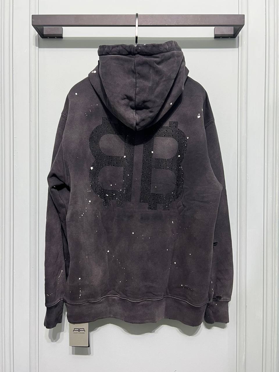 Толстовка женская Balenciaga LUX-95516 — это стильный предмет гардероба, выполненный в урбанистическом стиле. Она имеет темно-серый цвет с эффектом потертости, что придает ей винтажный вид. Эта толстовка идеально подойдет для создания повседневных образов.