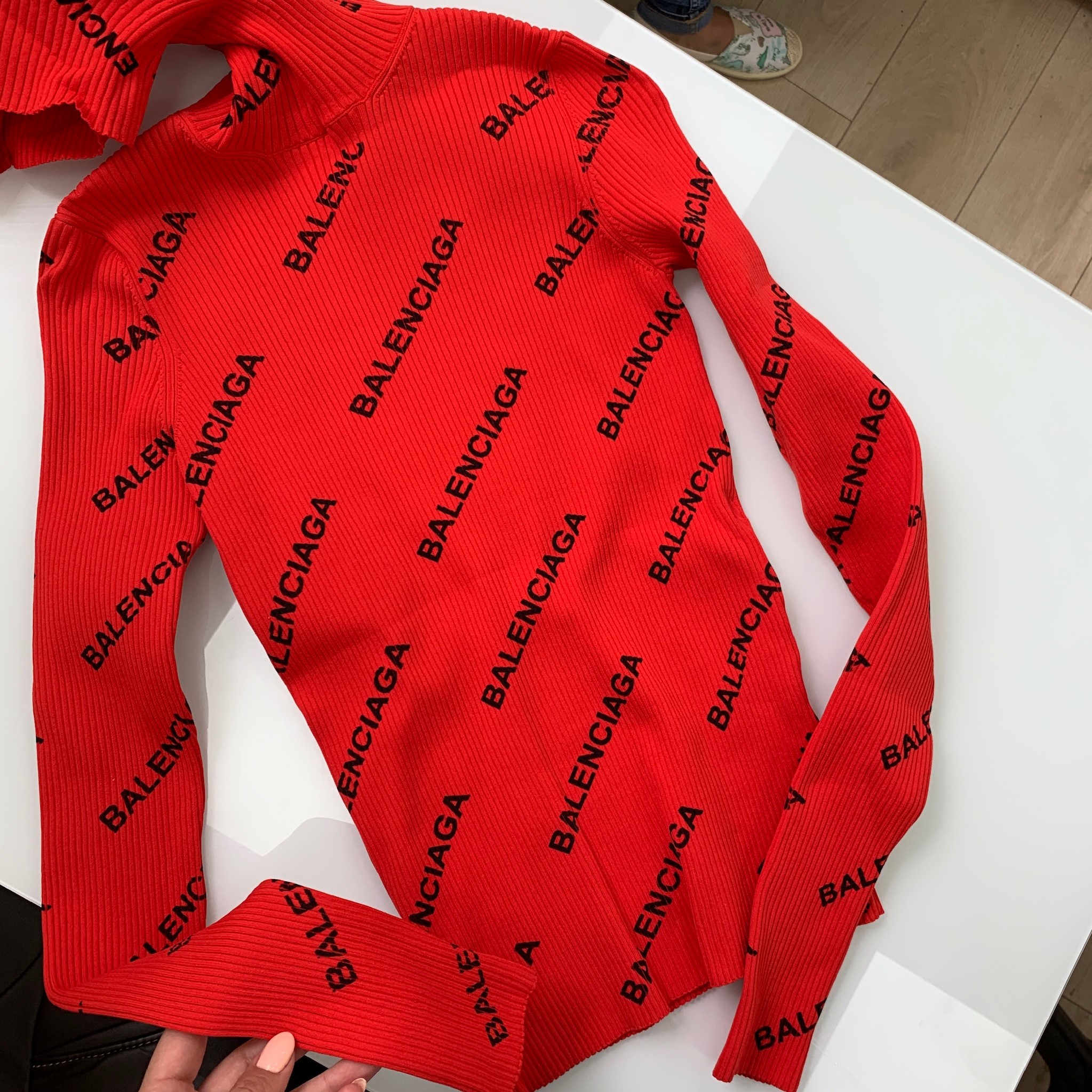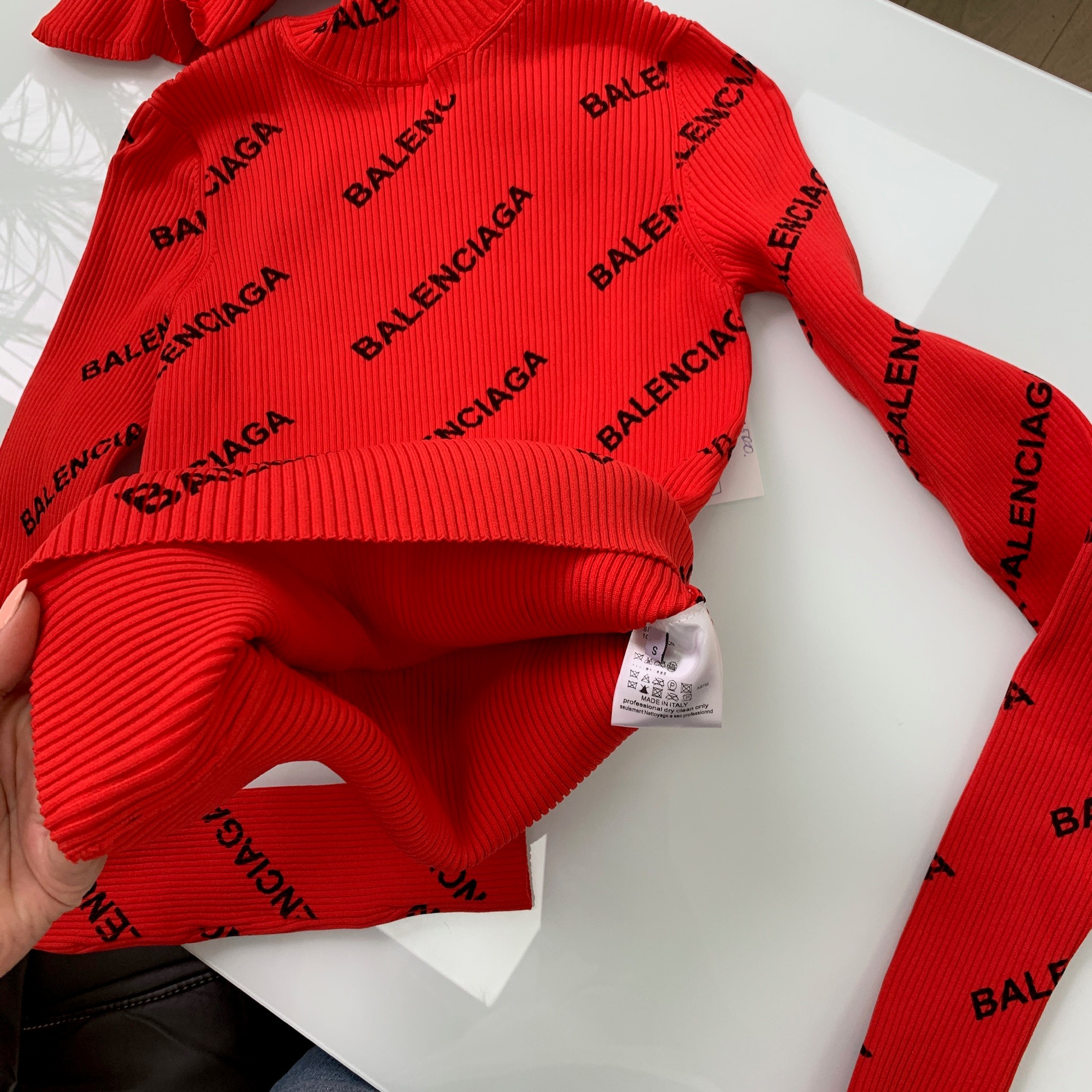 Эта яркая красная водолазка Balenciaga с повторяющимся черным логотипом бренда является выразительным элементом гардероба, сочетающим комфорт и актуальный дизайн. Изделие выполнено в рубчик, что придает ему текстурность и обеспечивает плотное прилегание к телу, подчеркивая силуэт. Водолазка идеально подходит для создания стильных и запоминающихся образов, демонстрируя принадлежность к миру высокой моды.