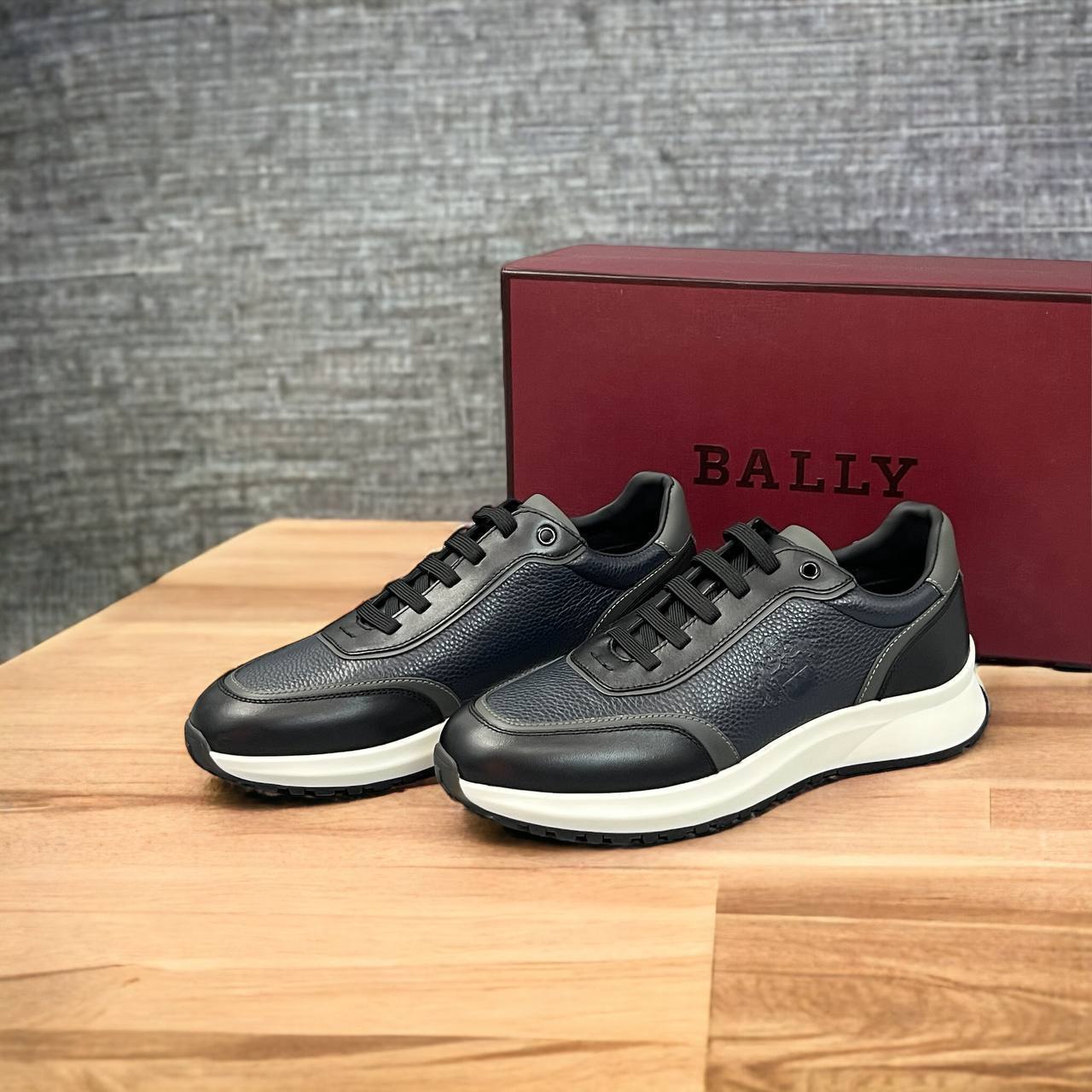 Кроссовки Bally LUX-92209 — это стильная обувь, которая сочетает в себе элегантность и комфорт. Модель выполнена в темно-синем цвете с черными и серыми элементами, имеет текстурированный верх и белую подошву. Идеально подходят для повседневной носки, создавая безупречный образ.