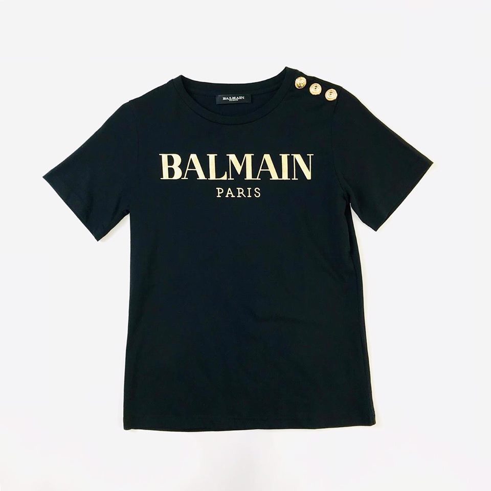 Стильная женская футболка Balmain LUX-15752 черного цвета с золотистым принтом бренда BALMAIN PARIS – это воплощение элегантности и комфорта. Классический крой с короткими рукавами и круглым вырезом дополнен декоративными золотистыми пуговицами на плече, придающими изделию изысканность. Футболка идеально подойдет как для повседневных образов, так и для создания более нарядных комплектов, демонстрируя ваш безупречный вкус.