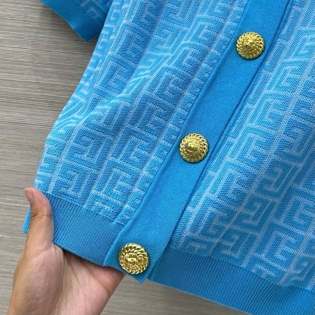 Кардиган Balmain LUX-119808 — это стильный предмет гардероба, который станет отличным дополнением к любому образу. Кардиган выполнен в ярко-голубом цвете с текстурированным узором, а также с короткими рукавами и круглым вырезом. Этот кардиган подходит для повседневной носки, а также для создания более элегантных образов.
