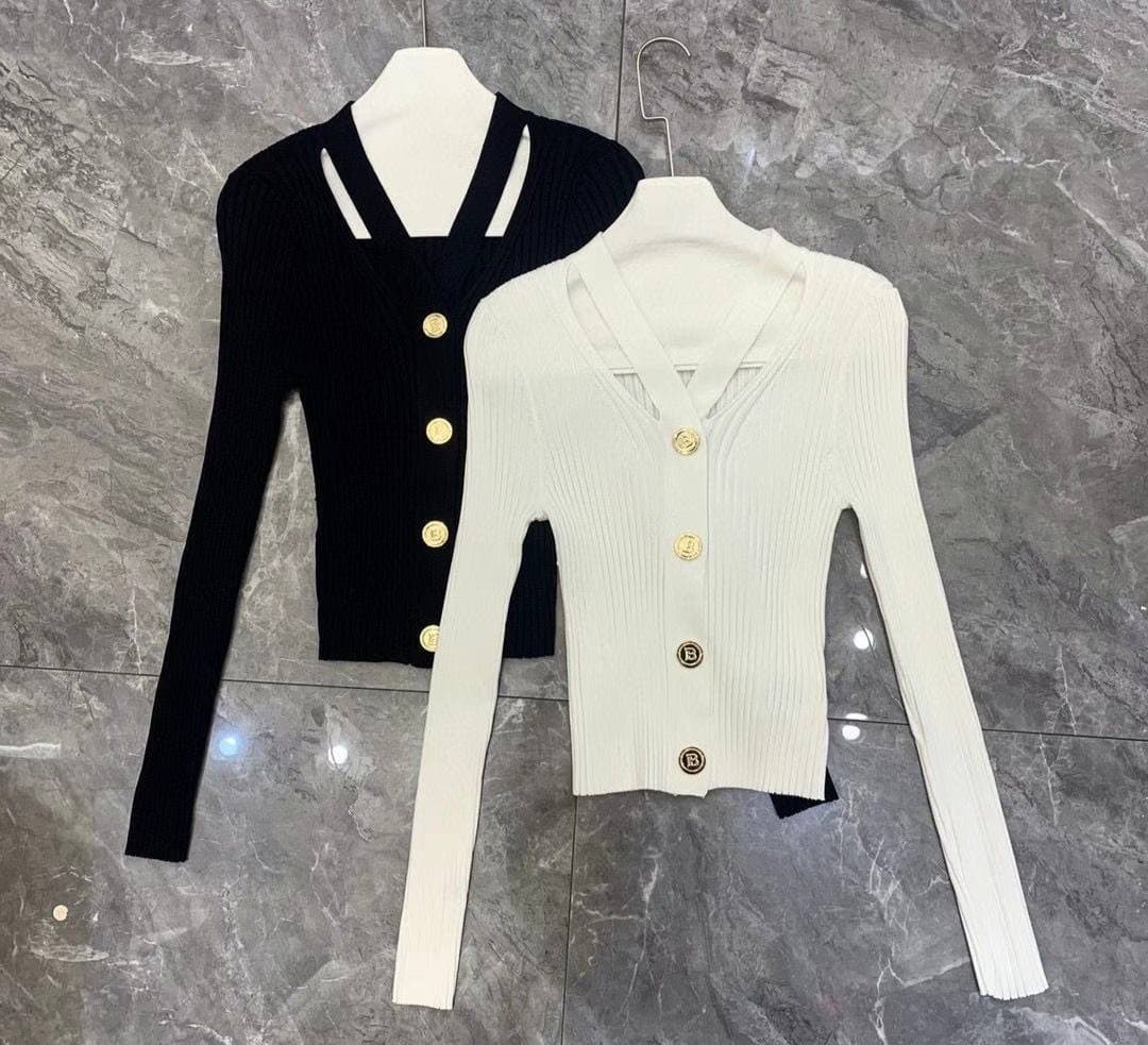 Представленная Кофта Balmain LUX-62599 — это стильная и элегантная модель, которая идеально подойдет для создания изысканных образов. Благодаря своему приталенному крою и оригинальному дизайну выреза, она подчеркнет достоинства фигуры. Кофта выполнена в классических черном и белом цветах, что делает ее универсальной и легко сочетаемой с различными элементами гардероба.