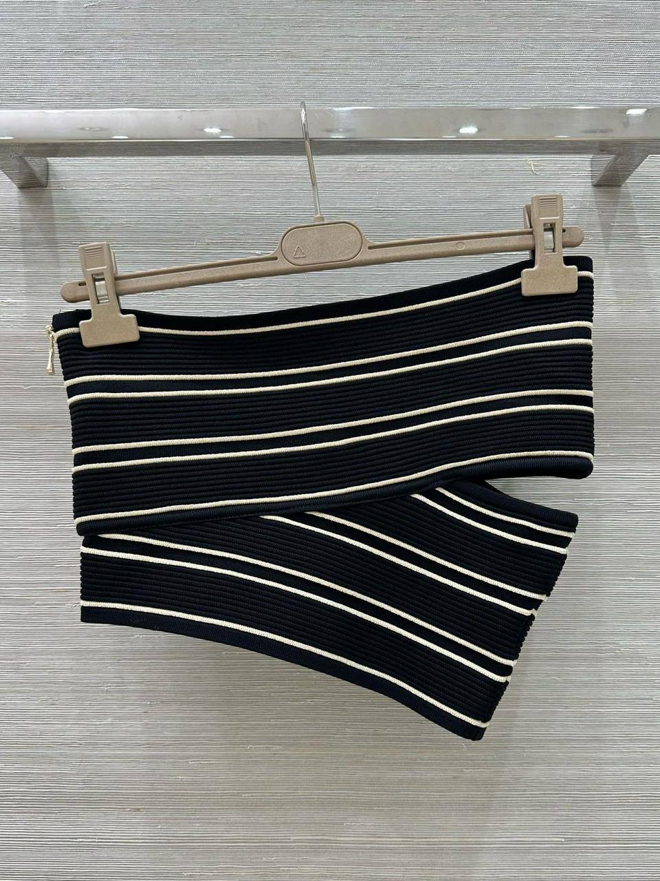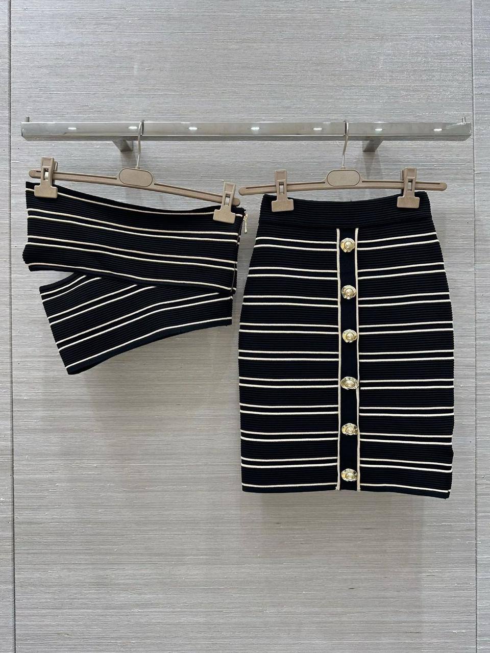 Костюм женский Balmain LUX-122296 - стильный комплект в полоску, состоящий из топа и юбки. Идеальный выбор для создания элегантного и современного образа.