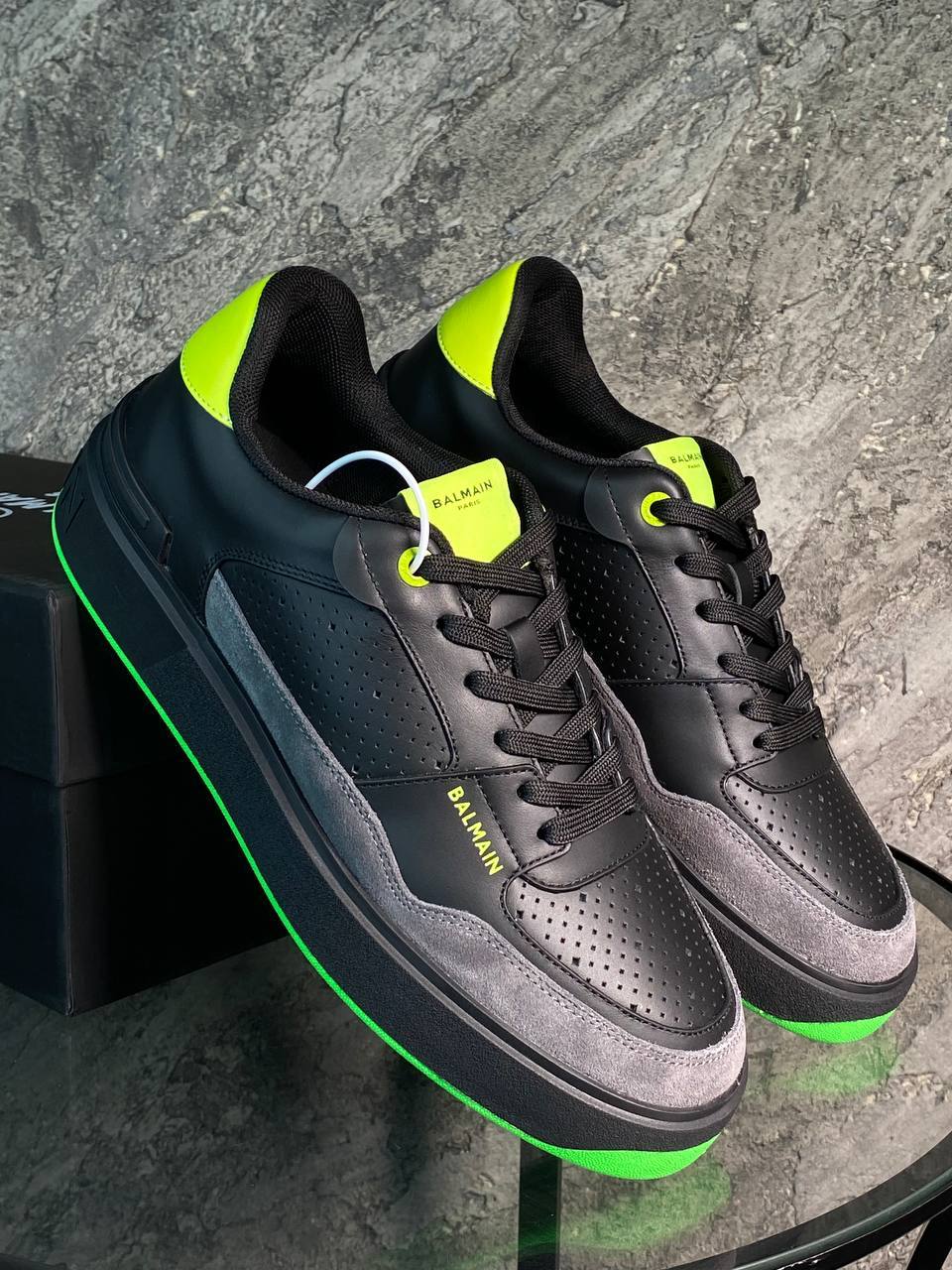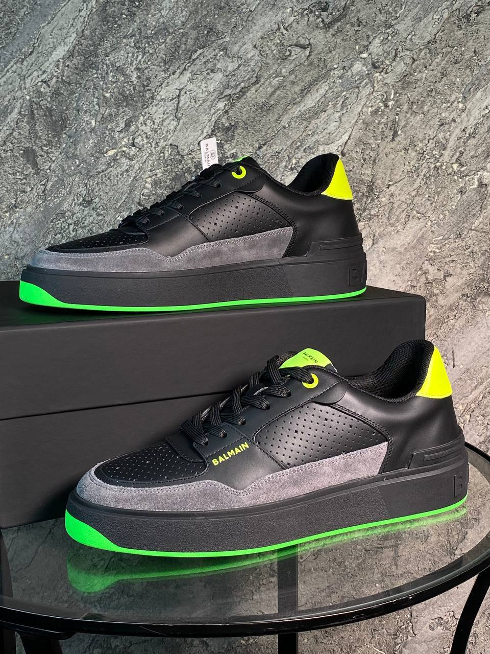 Кроссовки Balmain LUX-109654 - это стильная модель в спортивном стиле. Основной цвет кроссовок — черный, с добавлением серых вставок и ярких неоново-зеленых и желтых акцентов. Дизайн кроссовок сочетает в себе современный стиль и комфорт, что делает их идеальным выбором для повседневной носки.