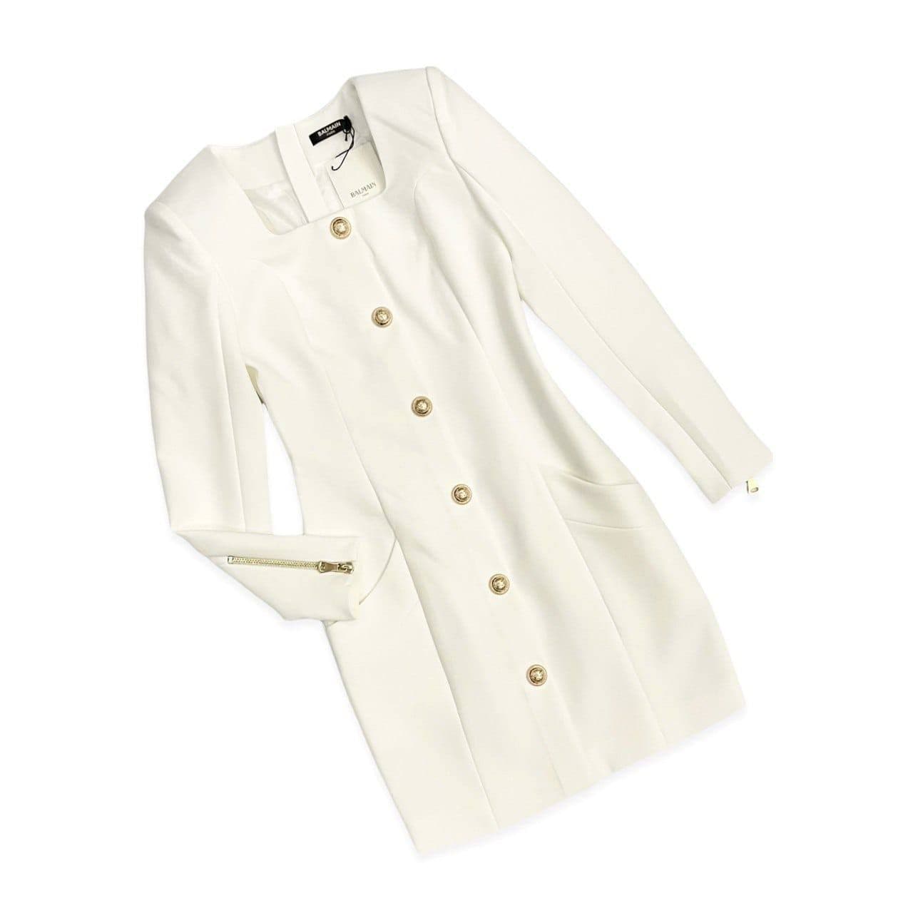 Это элегантное платье Balmain LUX-58973 в кремовом цвете — воплощение утонченности и стиля. Его приталенный силуэт и квадратный вырез горловины подчеркивают достоинства фигуры, а золотые пуговицы добавляют роскоши. Платье идеально подходит для создания изысканных вечерних или деловых образов, демонстрируя безупречный вкус.