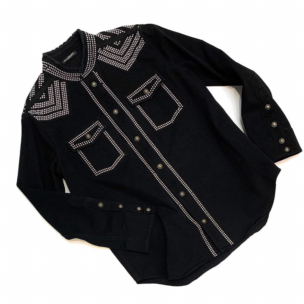 Balmain рубашка LUX-44662 – это стильная черная рубашка с длинным рукавом, выполненная в оригинальном дизайне. Её отличает богатое декорирование серебристыми стразами, которые обрамляют воротник, карманы и плечи, создавая выразительный образ. Эта рубашка идеально подойдет для тех, кто ценит уникальность и хочет выделиться из толпы.