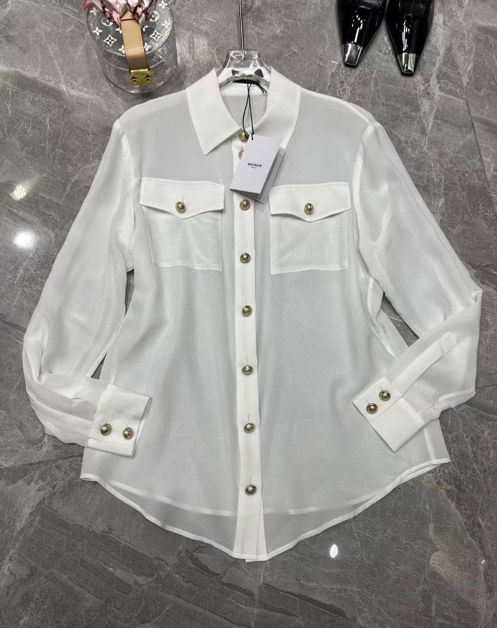 Представленная рубашка Balmain LUX-69544 – это элегантное решение для женского гардероба, выполненное в классическом стиле с узнаваемыми деталями бренда. Полупрозрачная ткань и золотистая фурнитура придают изделию изысканность и роскошь. Рубашка идеально подойдет для создания утонченных образов как для повседневной носки, так и для особых случаев.