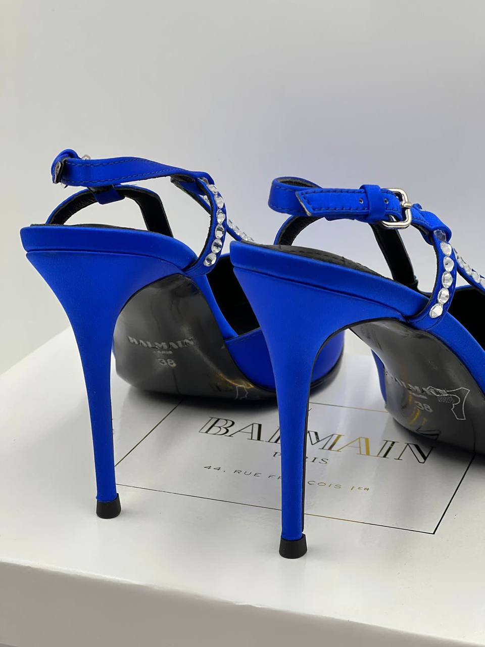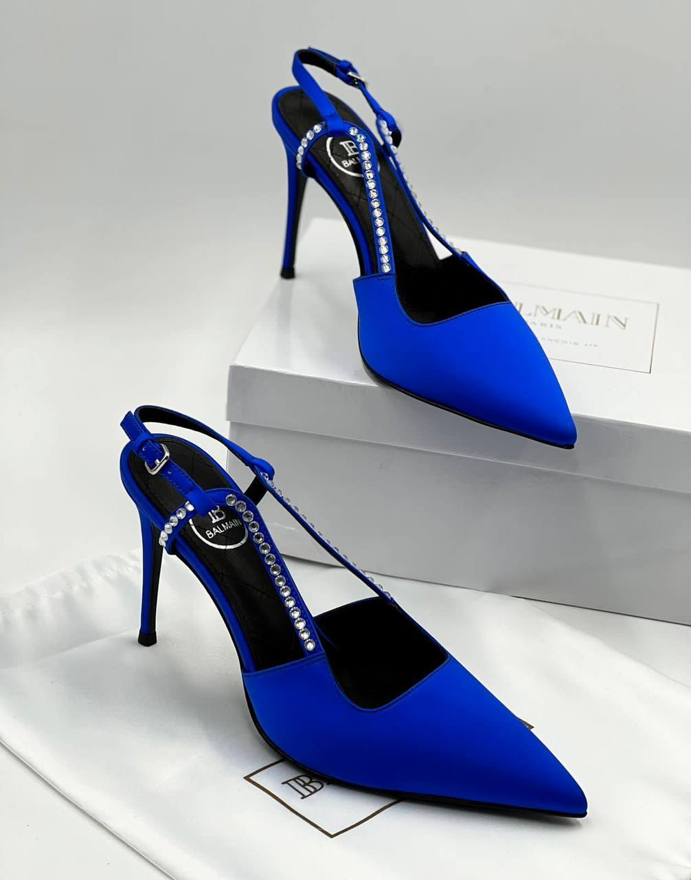 Туфли женские Balmain LUX-82487 - это воплощение элегантности и стиля. Ярко-синие туфли с острым носком и тонкой шпилькой подойдут для создания изысканных образов. Декоративная отделка стразами на ремешке добавляет роскоши и гламура.