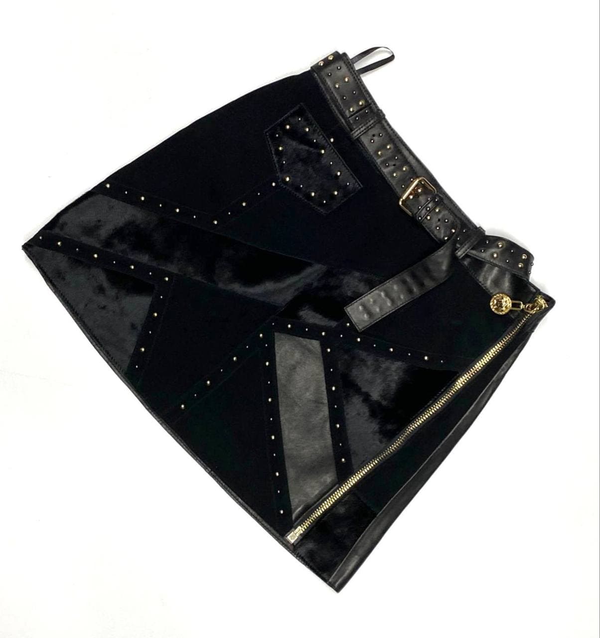 Balmain Юбка LUX-62854 представляет собой эксклюзивное дизайнерское изделие, сочетающее в себе смелость и элегантность. Асимметричный крой и сочетание различных фактур, таких как замша, кожа и мех, создают уникальный образ. Декоративные элементы в виде золотистых заклепок и пряжек подчеркивают роскошный стиль бренда. Эта юбка станет ярким акцентом любого вечернего или клубного наряда.