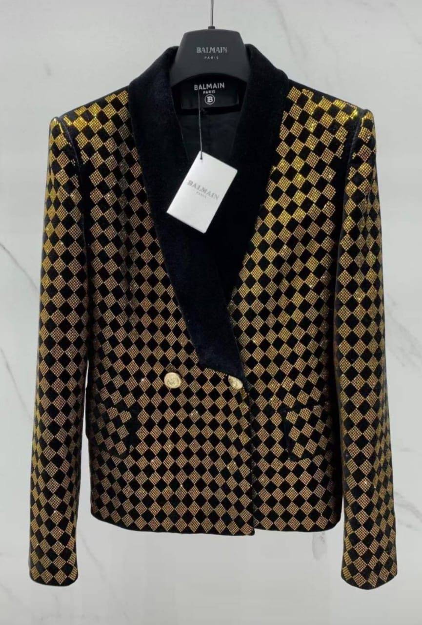 Жакет Balmain LUX-80585 — это стильный предмет гардероба от известного бренда. Жакет выполнен в классическом стиле с акцентом на роскошь и элегантность. Чёрно-золотой цвет и узор в виде ромбов делают его ярким и запоминающимся.