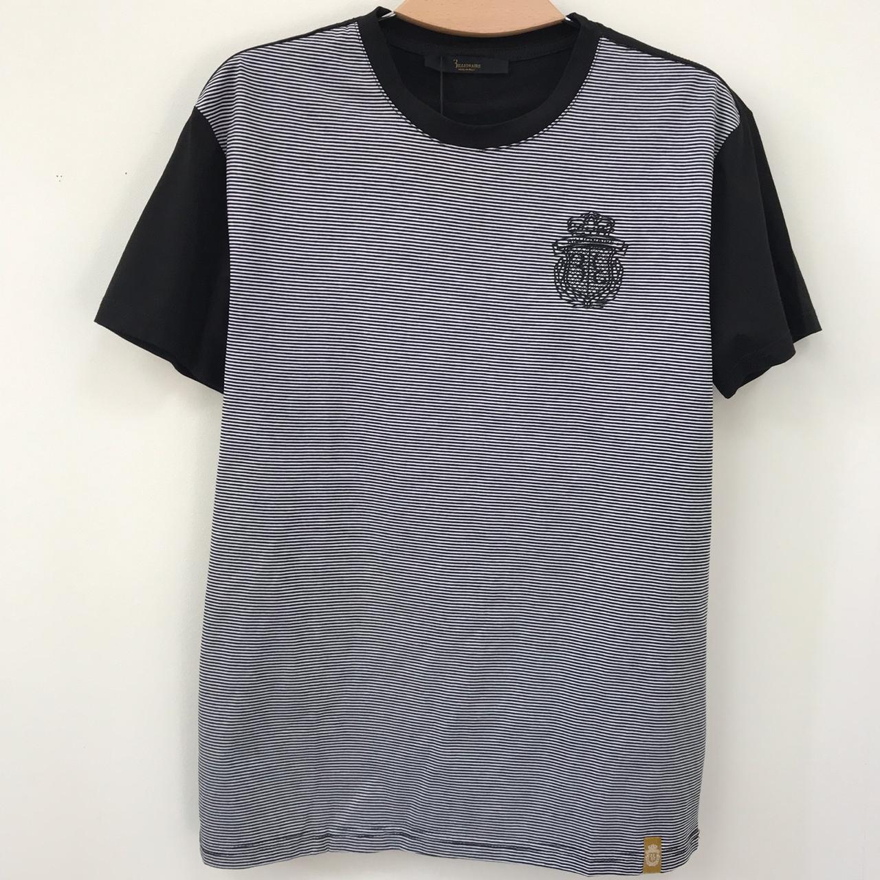 Футболка мужская Billionaire LUX-14257 – это стильный элемент гардероба, сочетающий классическую полоску с контрастными черными рукавами. Аккуратная вышивка герба на груди придает изделию элегантность и узнаваемость бренда. Дизайн футболки идеально подходит для создания как повседневных, так и более изысканных образов.