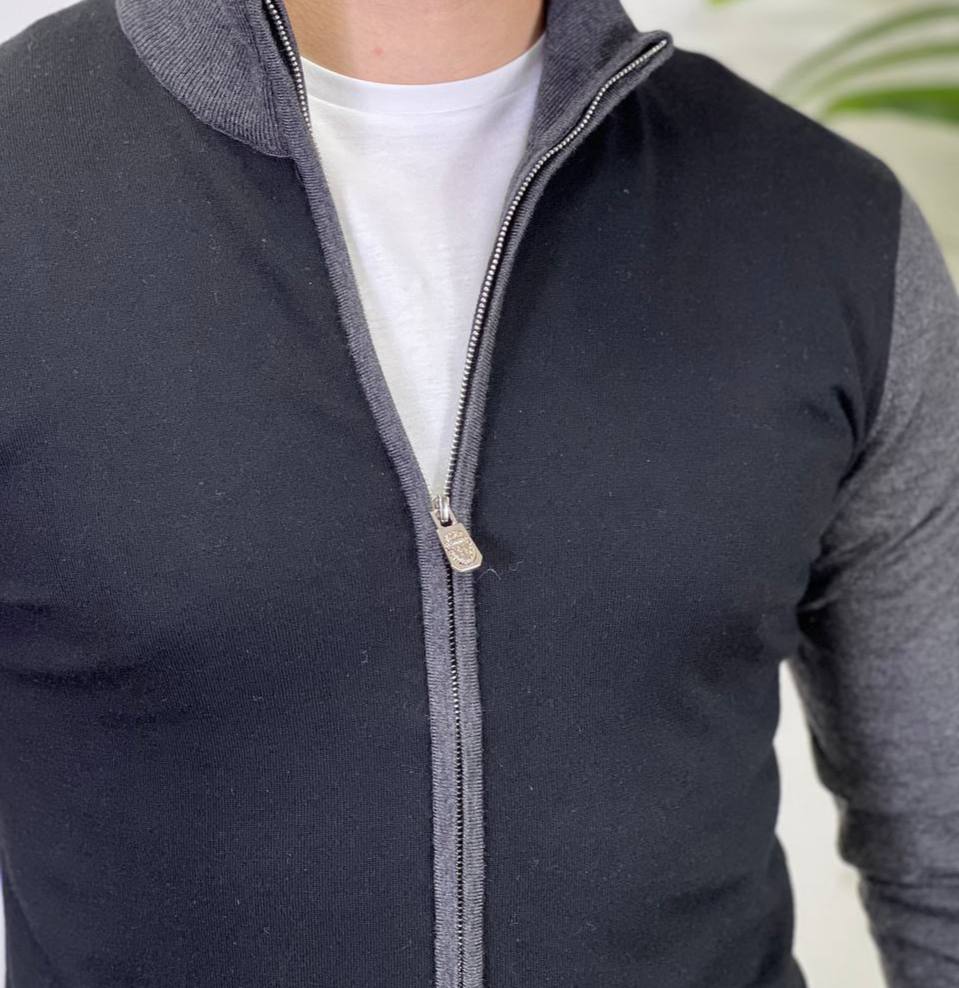 Кардиган Billionaire LUX-94549 — это стильный предмет гардероба для мужчин. Кардиган выполнен в классическом стиле, сочетающем черный и серый цвета. Он идеально подойдет для создания повседневных и элегантных образов.