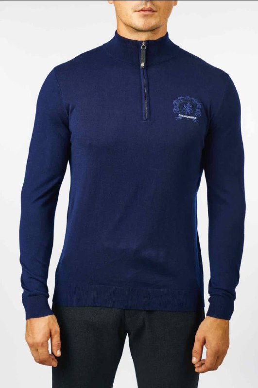 Кофта Billionaire LUX-55384 представляет собой стильный элемент мужского гардероба, выполненный в темно-синем цвете. Эта модель прекрасно подойдет для создания элегантных и современных образов. Дизайн кофты с воротником-стойкой и застежкой-молнией на груди подчеркивает ее модный вид.
