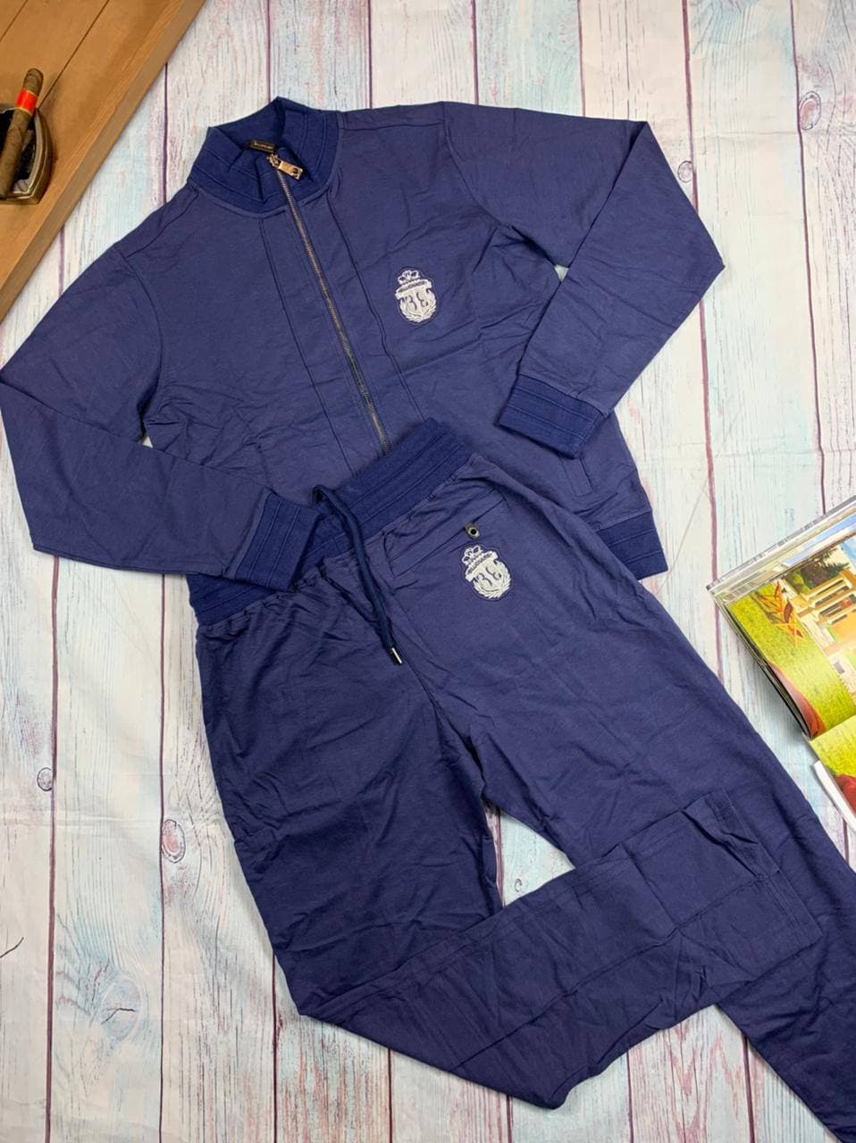 Спортивный костюм Billionaire LUX-54075 — это стильный и комфортный комплект, сочетающий в себе элегантность и спортивную функциональность. Костюм выполнен в глубоком темно-синем цвете, что придает ему универсальность и возможность сочетания с различными элементами гардероба. Оригинальная вышивка в виде герба на груди куртки и на бедре брюк подчеркивает эксклюзивность модели, делая ее идеальным выбором для ценителей моды.
