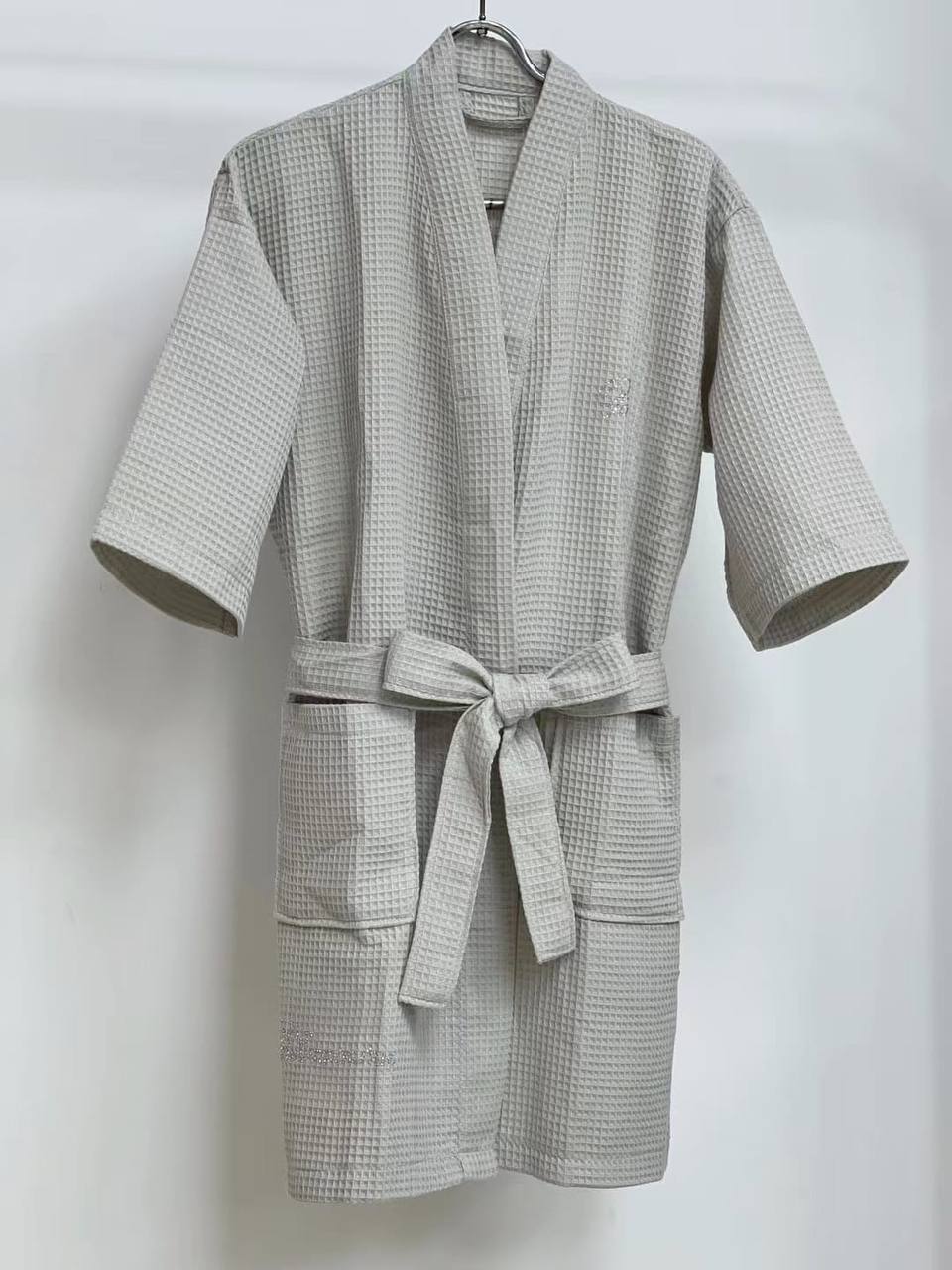 Халат Blumarine LUX-83223 — это элегантный халат в светлых тонах, выполненный в вафельном стиле. Он сочетает в себе стиль и комфорт, идеально подходит для использования после принятия водных процедур или в качестве домашней одежды. Халат имеет пояс и карманы, обеспечивая удобство и практичность.
