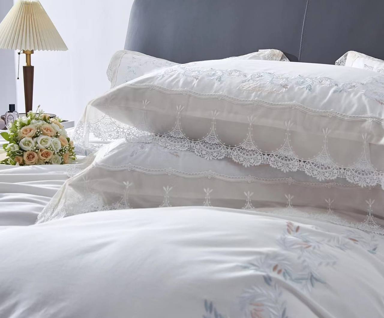 Комплект постельного белья Blumarine LUX-82677 — это воплощение изысканности и утонченности. Белоснежный комплект, выполненный в элегантном стиле, украшен изящной вышивкой по краям, добавляющей изысканности. Идеально подходит для создания атмосферы роскоши и комфорта в вашей спальне.