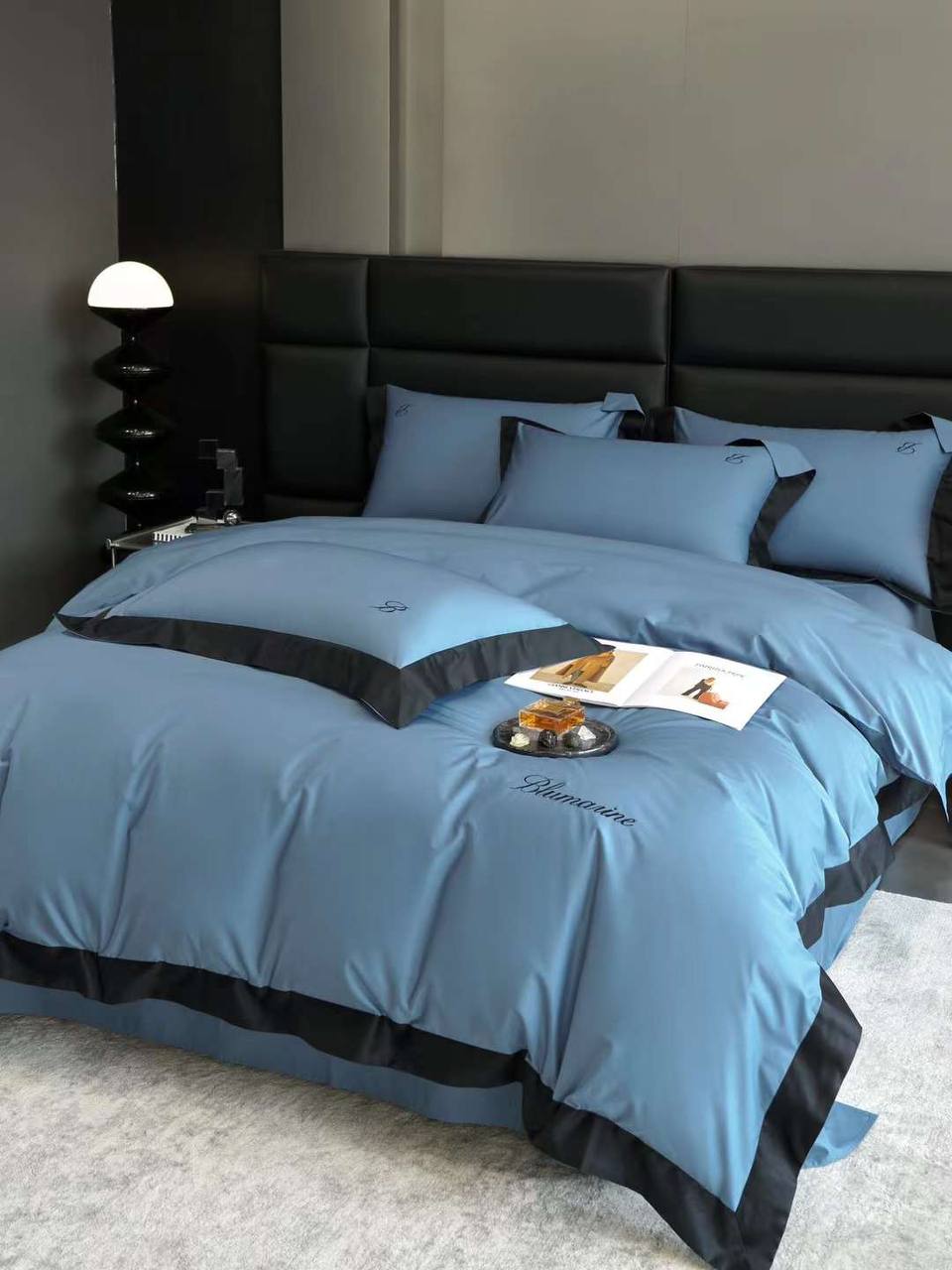 Комплект постельного белья Blumarine LUX-107104 — это воплощение элегантности и комфорта. Комплект выполнен в современном стиле, сочетает в себе спокойный голубой оттенок с черными контрастными деталями. Идеально подойдет для создания расслабляющей атмосферы в спальне.