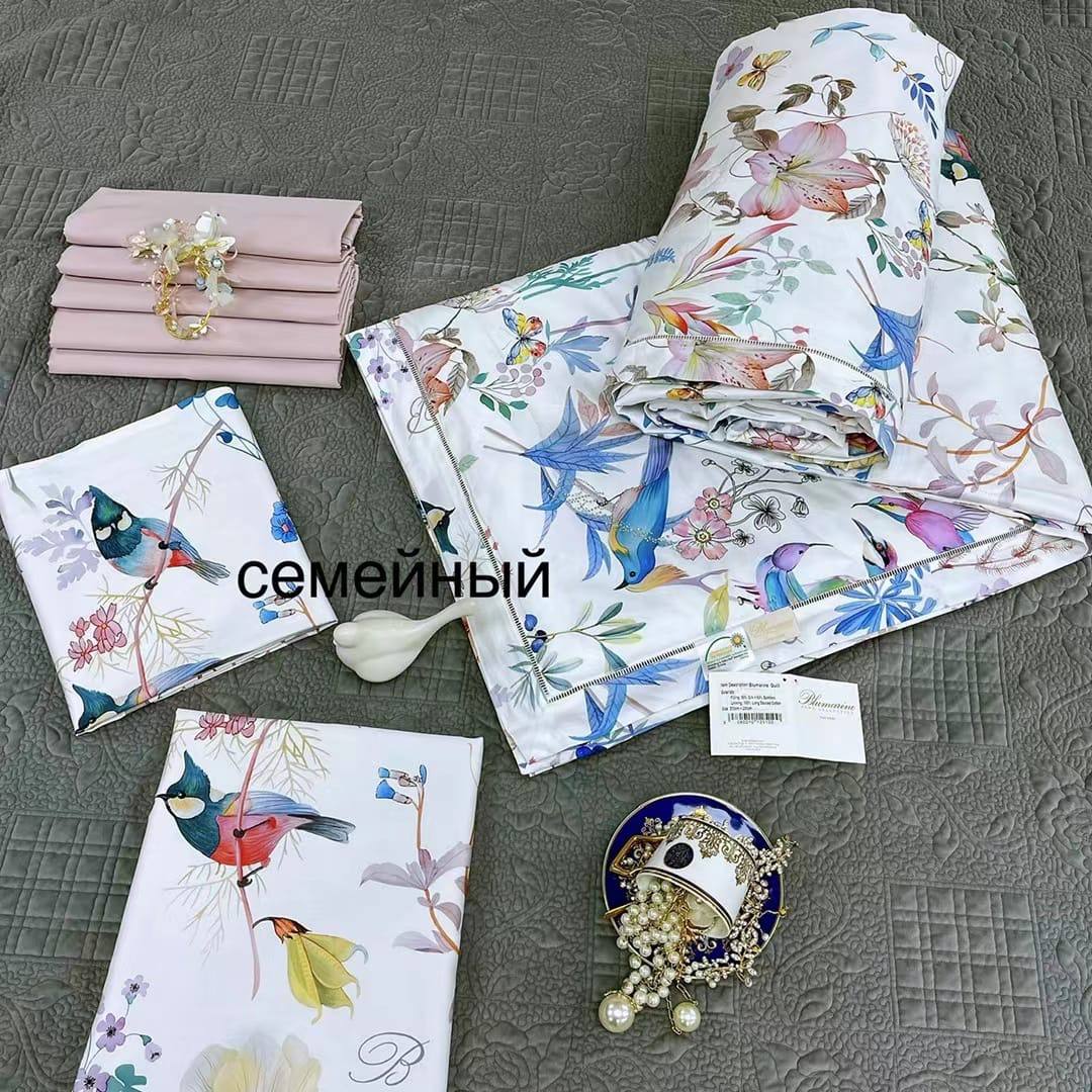 Комплект постельного белья Blumarine LUX-70133 — это изысканный текстиль для вашей спальни, выполненный в нежном цветочном стиле с изображением птиц и бабочек на белом фоне. Этот комплект привнесет атмосферу легкости и свежести в интерьер, создавая уютную и расслабляющую обстановку для отдыха.