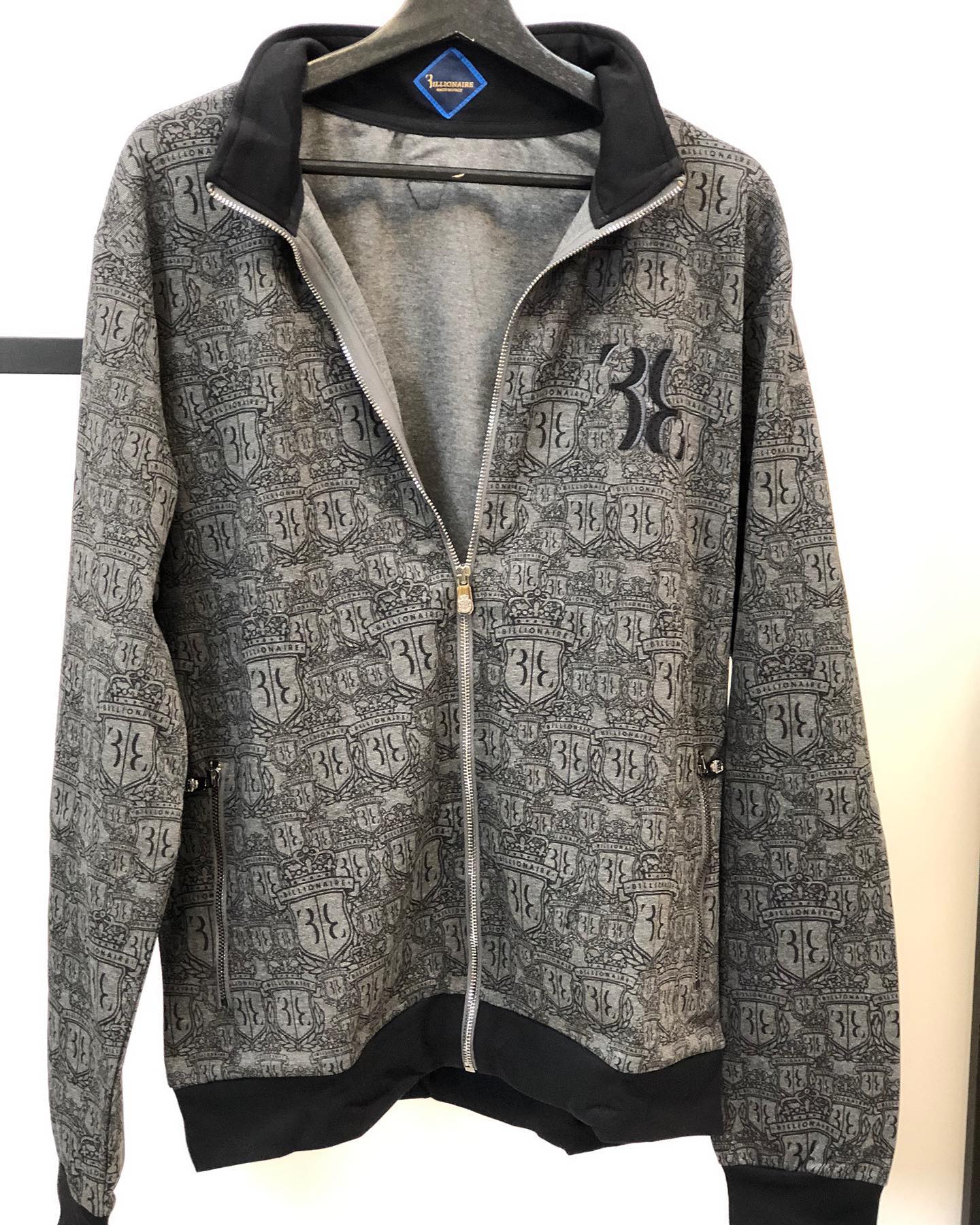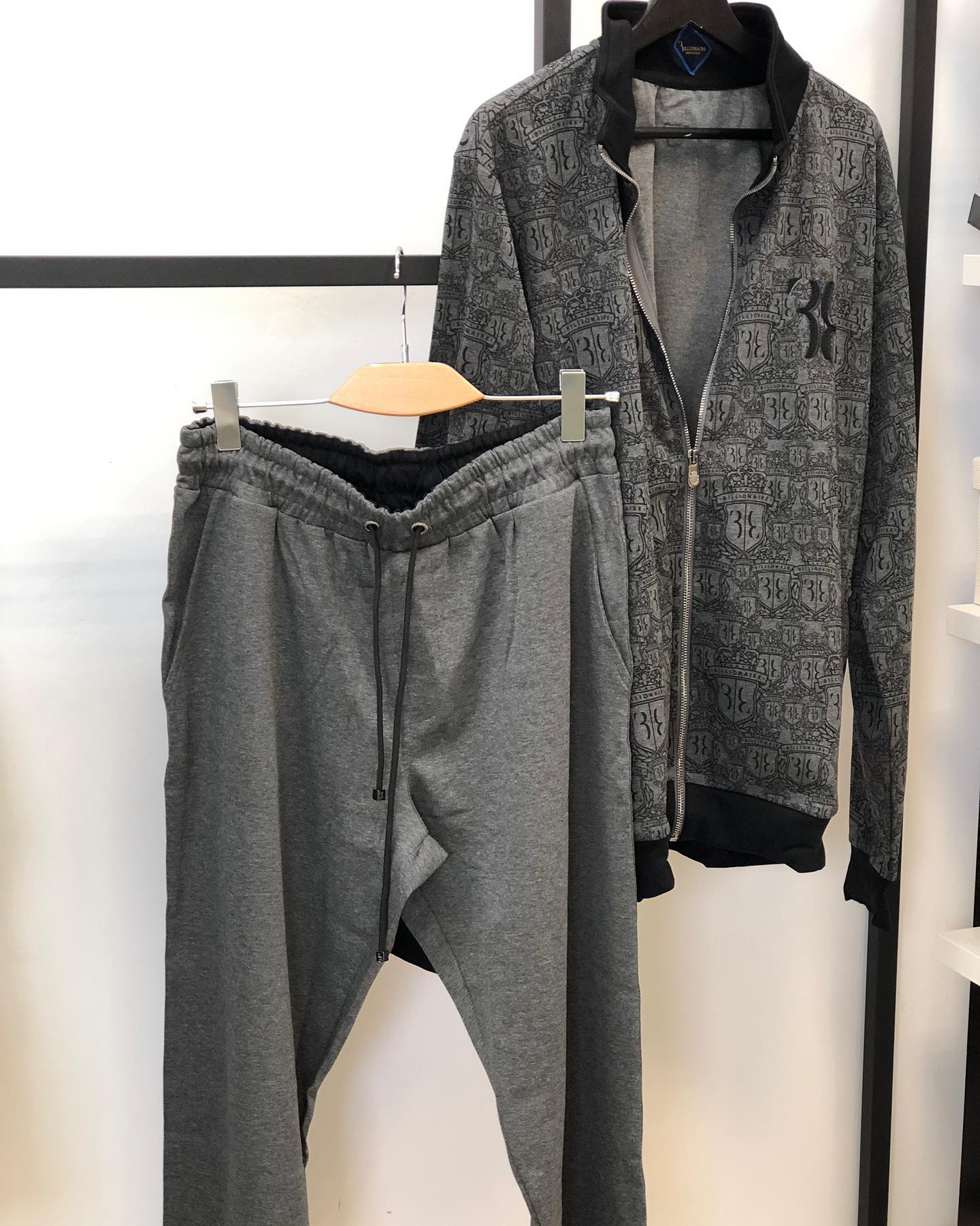 Стильный спортивный костюм Blumarine LUX-34652 представляет собой элегантное сочетание комфорта и современного дизайна. Комплект состоит из брюк и куртки-бомбера, выполненных в благородном сером цвете. Брюки прямого кроя с эластичным поясом и регулируемым шнурком обеспечивают идеальную посадку. Куртка-бомбер застегивается на молнию и украшена оригинальным принтом с гербами и логотипом бренда, что придает изделию уникальность.