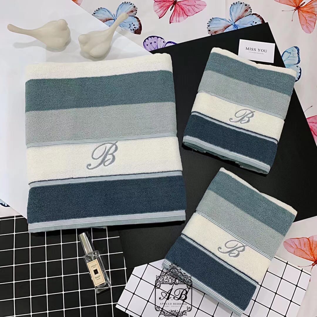 Этот набор из трех полотенец Blumarine LUX-45155 представляет собой стильное и элегантное дополнение для вашей ванной комнаты. Полотенца выполнены в современном дизайне с горизонтальными полосами различных оттенков серого и синего, дополненных кремовой вставкой с вышитой монограммой "B". Мягкая текстура и качественный материал обеспечивают комфорт и долговечность.